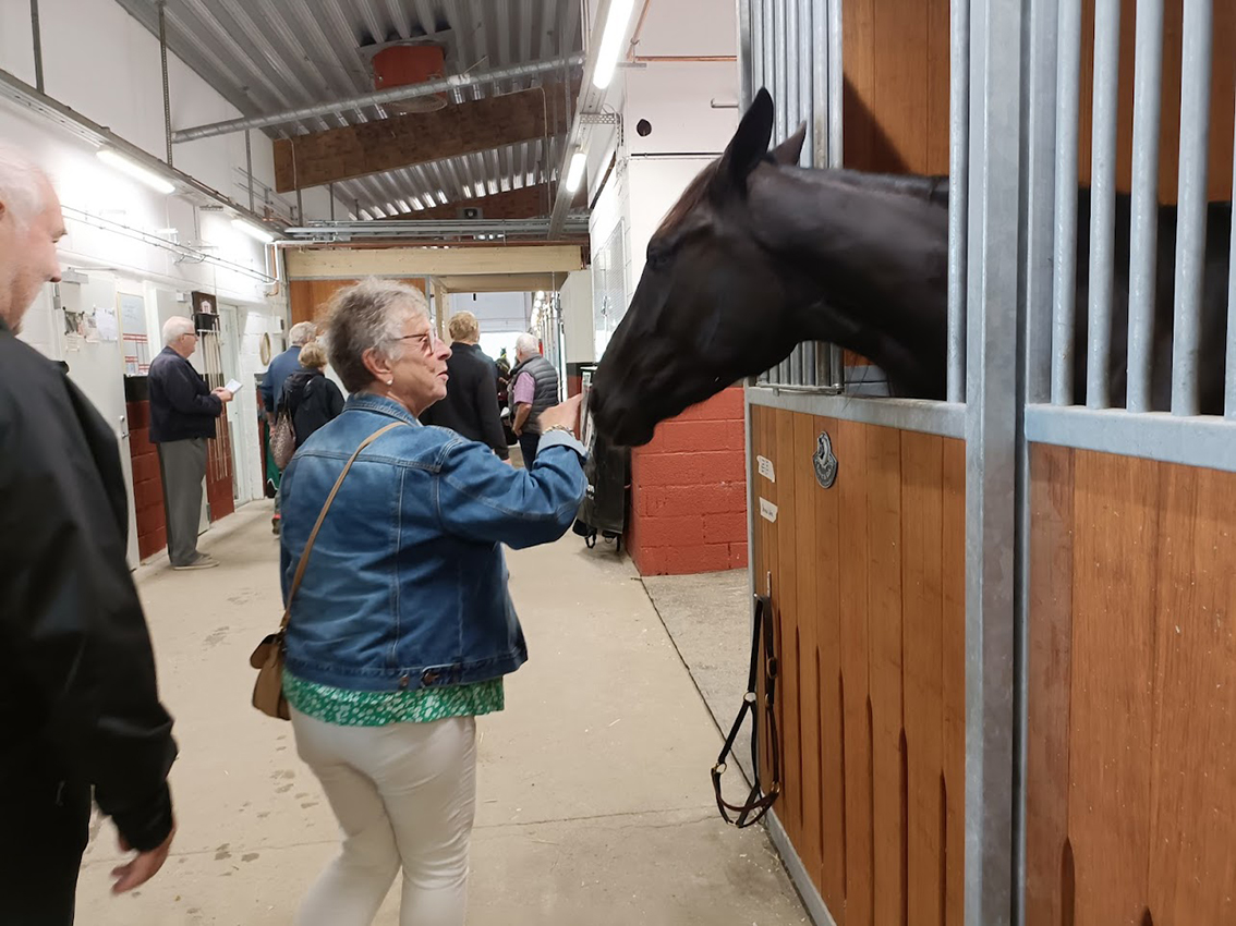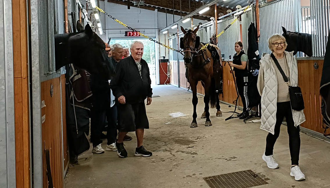 Man fick en mycket intressant guidning på stallbacken, och  chans att träffa flera kuskar och få stalltips. Efter rundvandringen avnjöts mat och dryck i restaurangen, och  loppen kunde följas från bästa åskådarplats.