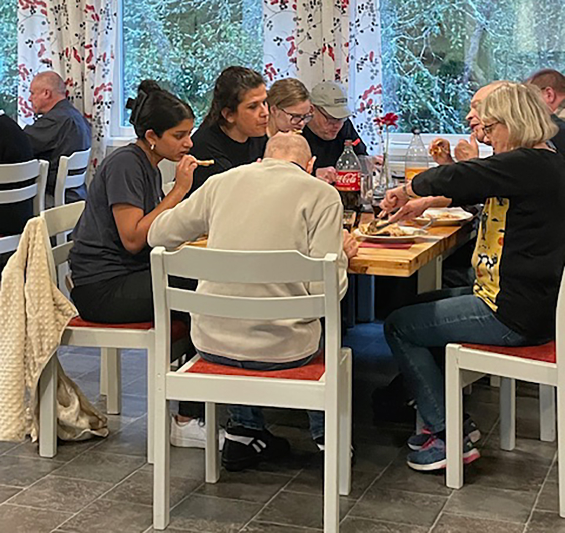I lördags var det dags igen för den efterlängtade aktiviteten ”Bingo med tillhörande pizza”. Drygt 45 medlemmar och personal hade anmält sig, skojigt med så många! Alla var förväntansfulla inför bingospelet som sköttes galant av Karolina och många vinster blev det, en del hade mer tur än andra men stämningen var på topp ändå. Vinstbordet var gediget och det fanns mycket att välja på och valet blev svårt för somliga. Sen var det tid att ta sig an pizzorna och alla åt med god aptit.