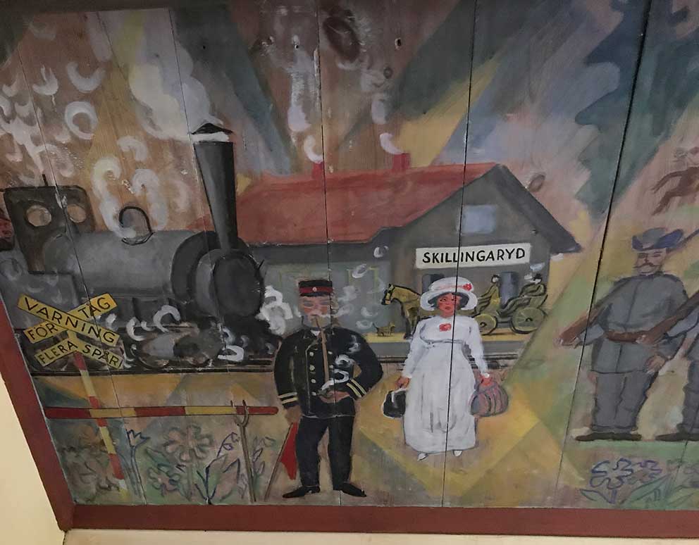 Det är en del av vad finns i denna byggnad som fram till 1938 stod vid torget i Skillingaryd. Egentligen ska man nog kalla huset Thelanders magasin, vilken stod invid hans affär. I den lokalen fanns Skillingaryds första skola, troligen redan omkring 1850.