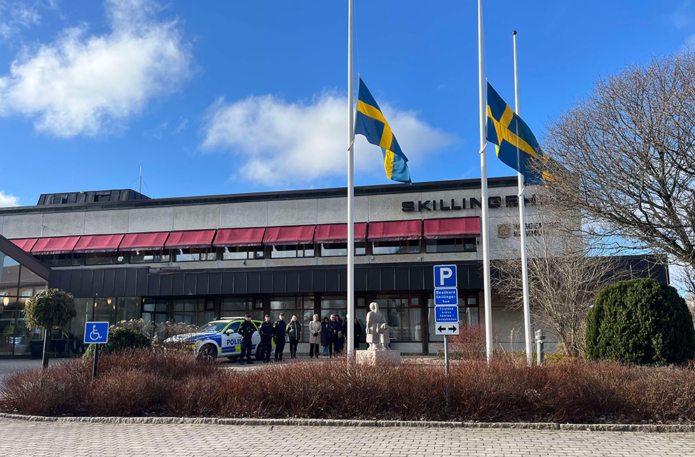 Flaggorna har hissats på halv stång utanför Skillingehus från klockan 09.00 fram till dess att den tysta minuten var avslutad.