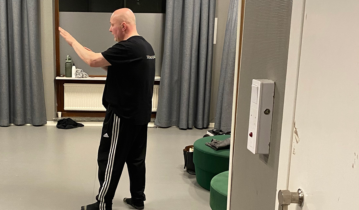 David Gustafsson är linjeföreståndare för de blivande socialpedagogerna på Värnamo folkhögskola och han berättar att eleverna är utbildade i det här med självskydd. Men att man inför detta har fått arbeta om det hela lite för att passa målgruppen.