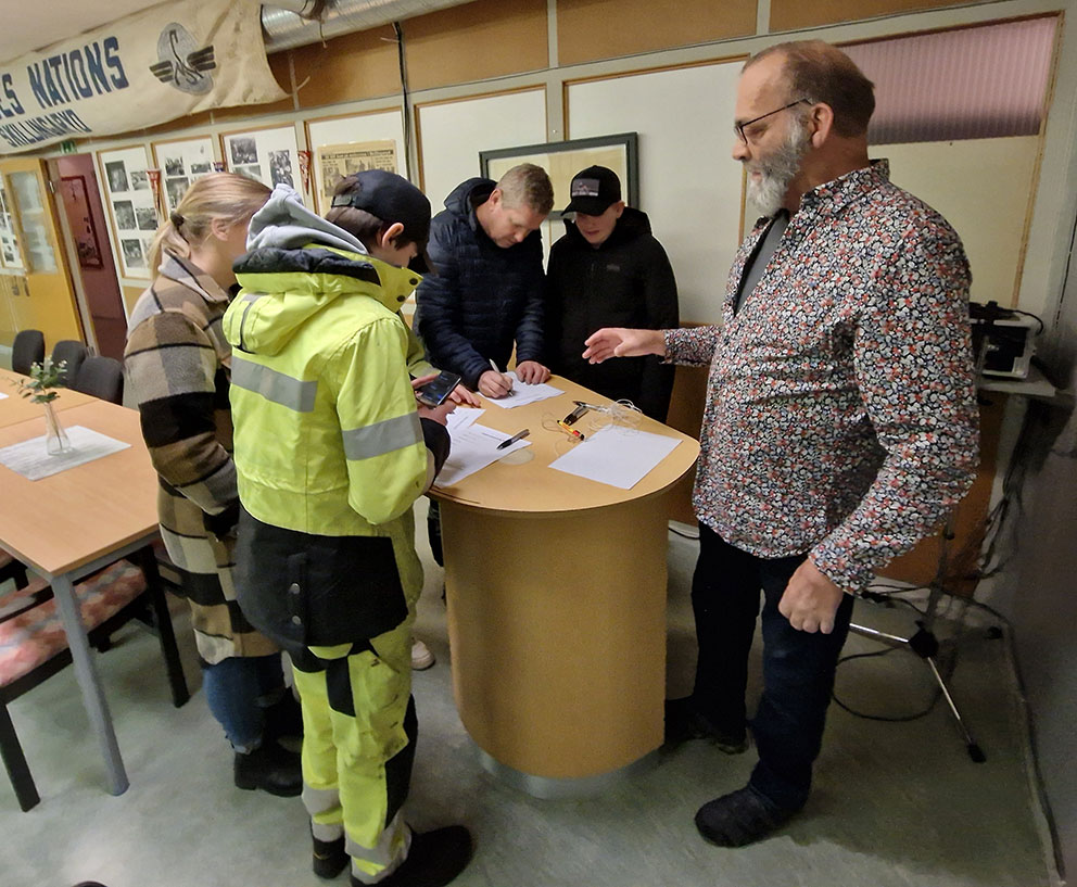 När ungdomarna tillsammans med föräldrarna började trilla in så var det först en infolapp som skulle fyllas i och därefter var det fika, kaffe, saft och bullar.