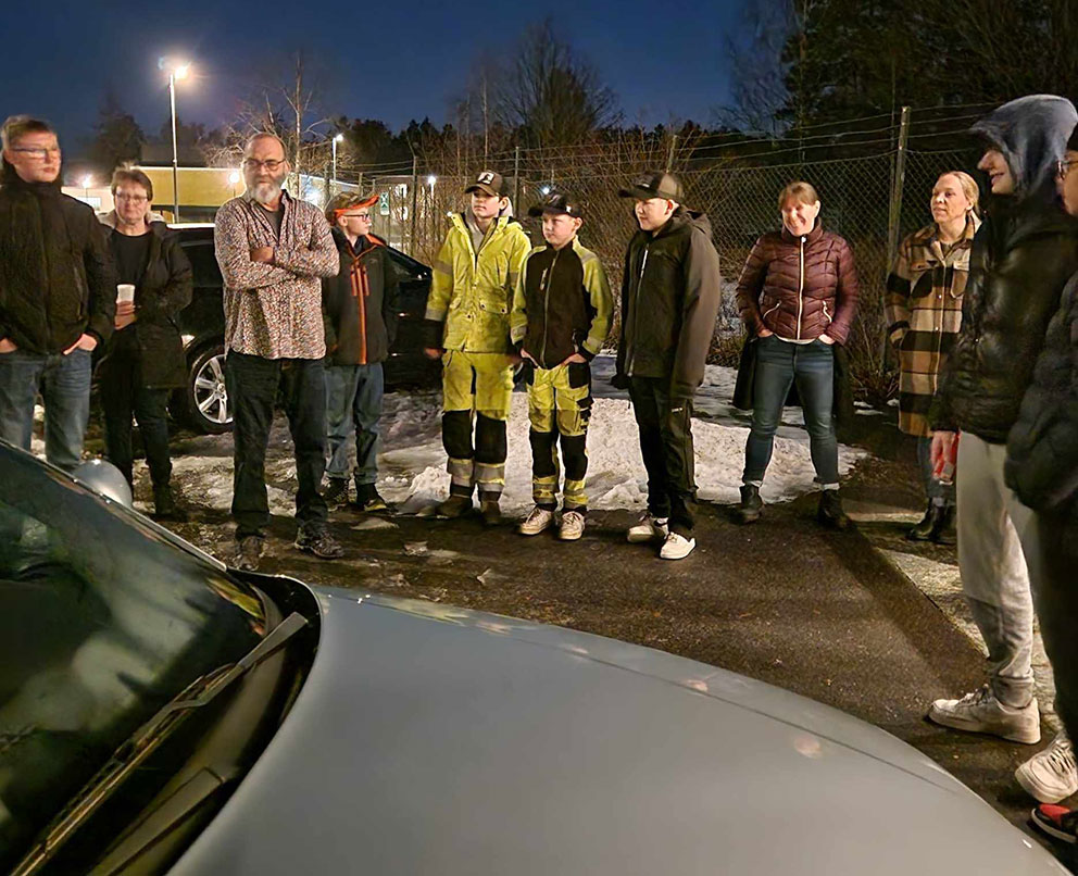 Lars Seger visade projektbilen för ungdomarna och föräldrarna