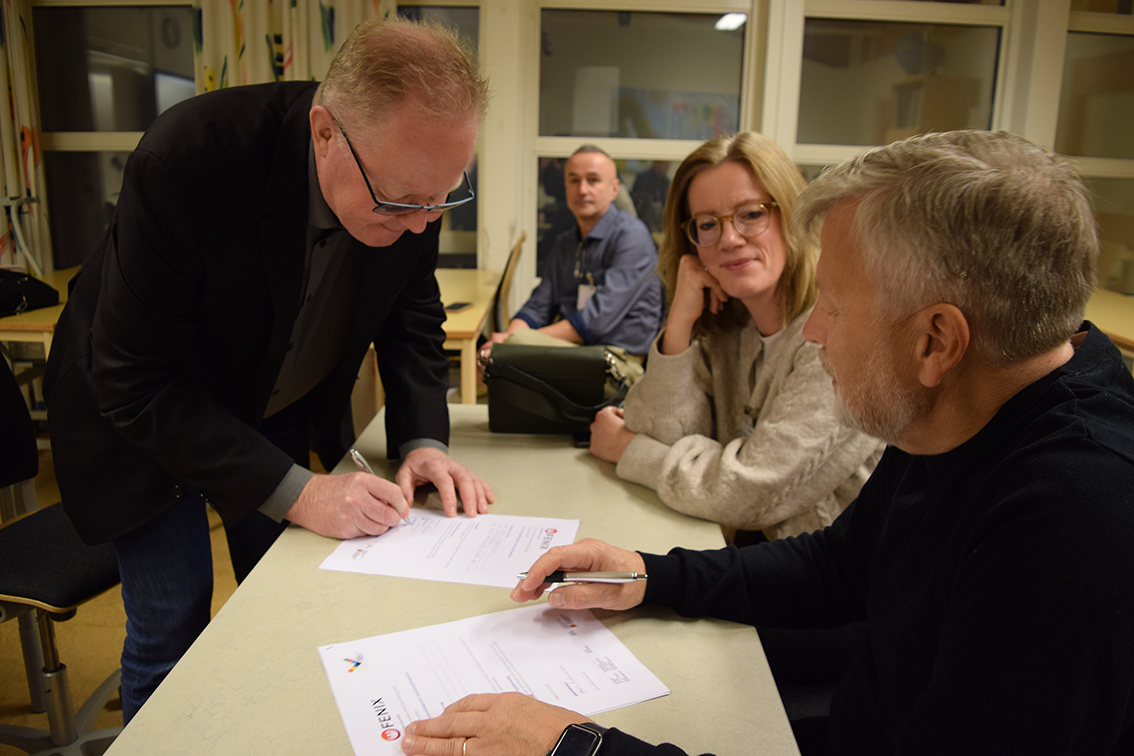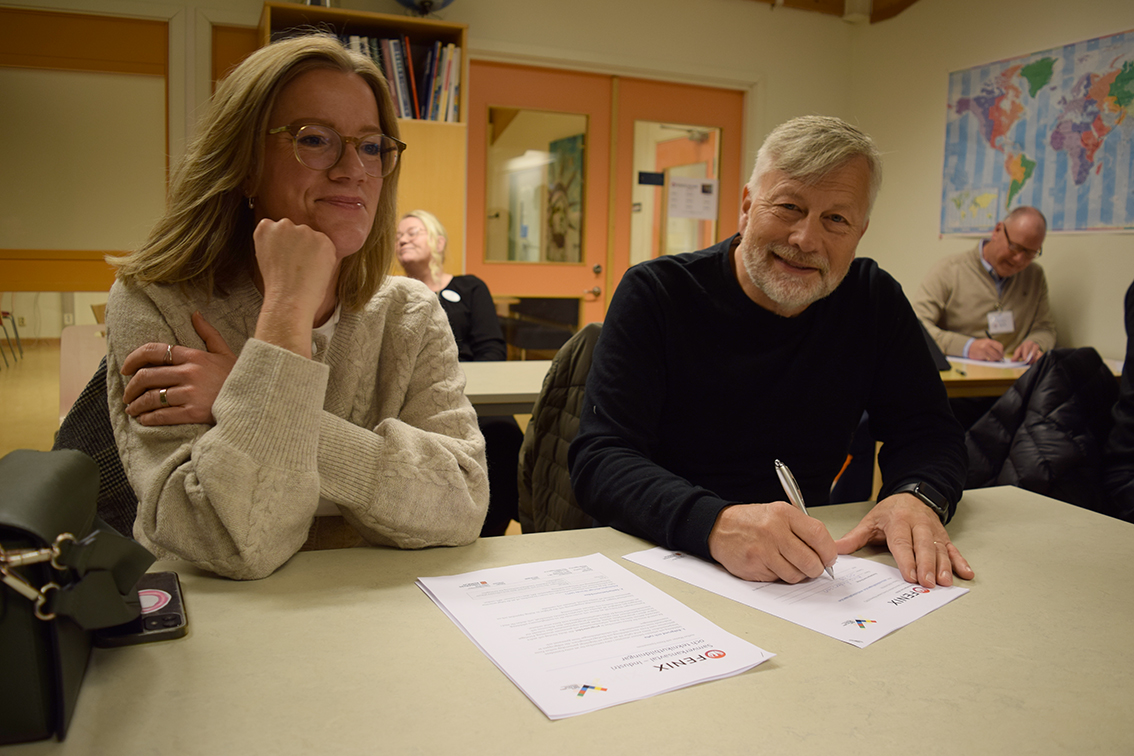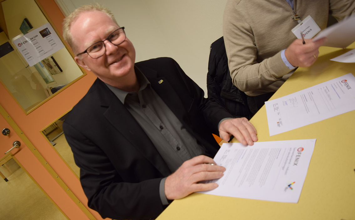 I ett klassrum skrevs på morgonen ett samverkansavtal mellan Fenix och bygdens företagare. – Högtidlig dag i dag, säger förvaltningschefen Per-Erik Lorentzon.