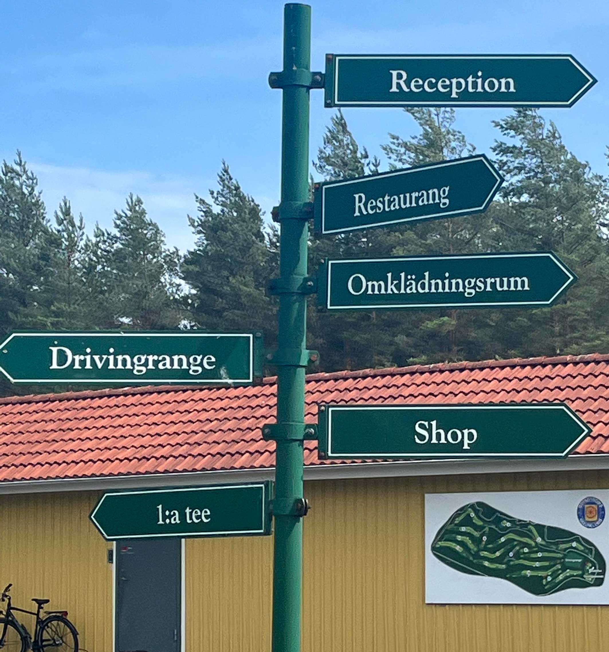 Axel och Hugo ska nu vägleda de anställda med familjer genom golfupplevelsen medan de som redan har grönt kort får gå en runda på banan. Efter ungefär ett slag, närmare räknat exakt ett slag så var vi ute i skogen och gick.