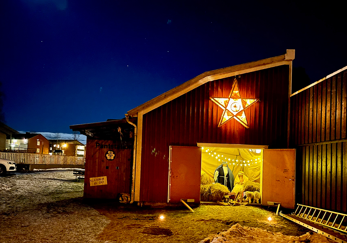 I uthuset som ligger jämte Equmeniakyrkan i Vaggeryd finns denna fina julkrubba. Stjärnan som lyser över krubban är en kopia av Rune Svenssons adventsstjärna som pryder många Vaggerydshem.
