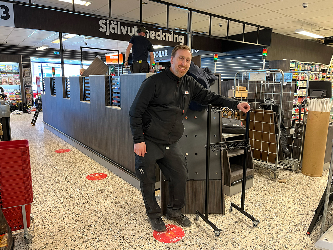 – Vi håller på att bygga om för att installera självscanning. På onsdag nästa vecka sätter vi i gång så då hoppas jag att vi är klara. Det kommer att finnas fyra självscanningskassor och en självutcheckning, berättar butiksägaren Joakim Sörås på ICA Supermarket i Vaggeryd.