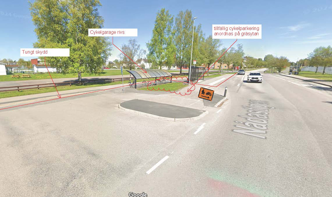 Cykelvägen från Ringvägen utmed Nådastigen är avstängd fram till AME redan nu och busshållplatsen kommer tillfälligt att flyttas fram till gamla stationshuset inom ett par veckor. Bussen kommer att gå genom centrum på Stationsgatan och Linnégatan under den här perioden. Cykelförrådet vid busshållplatsen kommer också att tas bort och det blir en tillfällig cykelplats bredvid i stället. Parkeringen vid busshållplatsen kommer att kunna användas som vanligt under arbetets gång, kanske att det blir något trängre. Simhall, sporthall och familjecentral är tanken att de ska kunna bedriva sin verksamhet som vanligt.