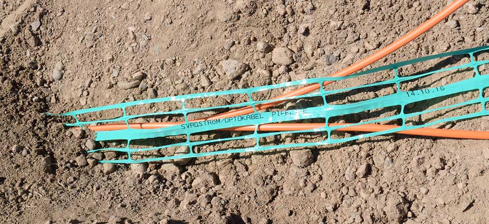 Robert Svensson, projektledare, visar att elledningarna läggs i så kallade förband med en liten bit emellan för att dels minska eventuella framtida avgrävningar men också för att de båda förbanden också påverkar varandra. Det läggs jordskikt på förbanden och därefter läggs fiber. Sträckan mellan stationerna mäter 1 700 meter och i de två förbanden läggs tre elkablar. Varje elkabelsrulle mäter 500 meter och man drar ut hela rullen för att minska antalet skarvar. På plats jobbar en till två maskiner och två till fyra arbetare.