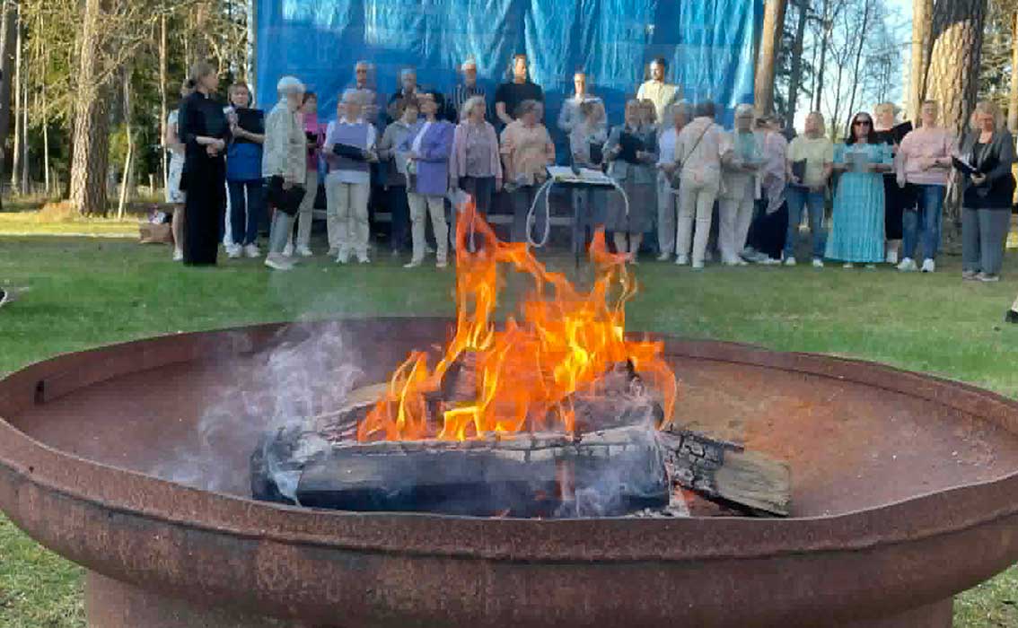 Det var en härlig vårkväll och många kom för att del av brasan, sång, musik och tal.