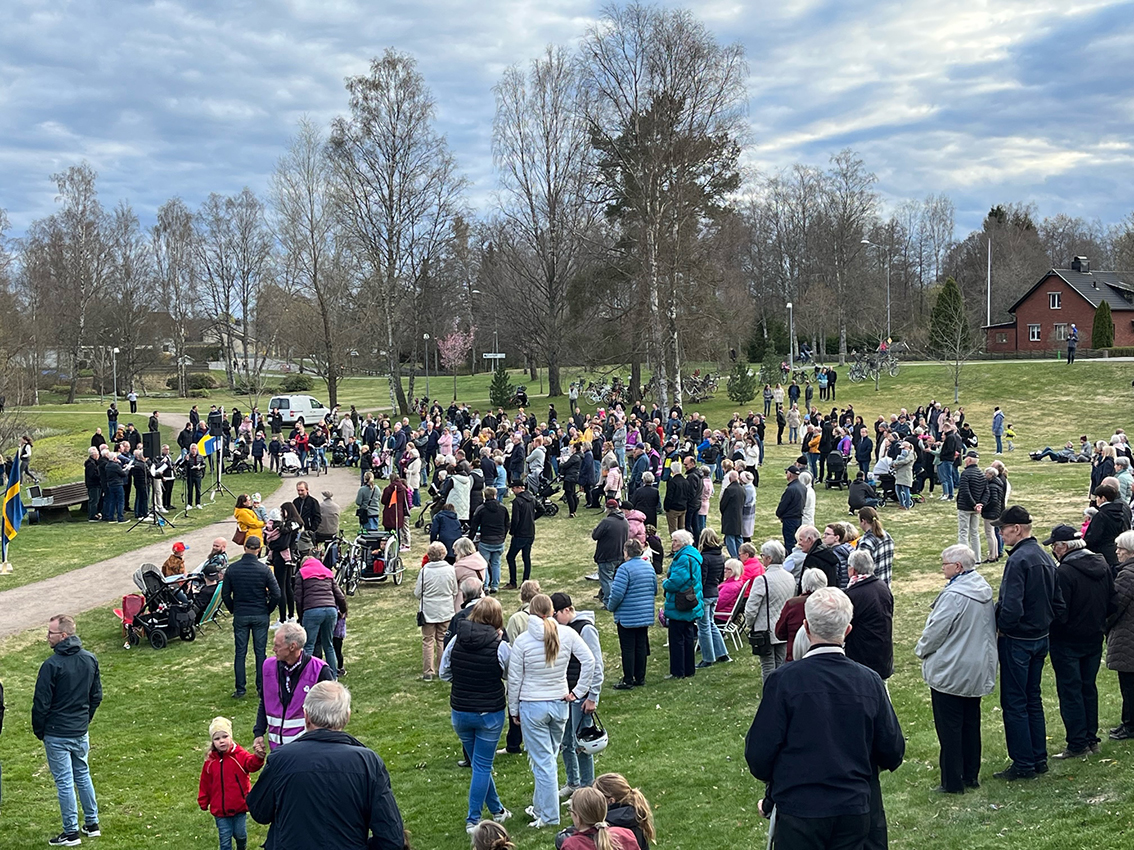 Stämningsfullt firande med många besökare i Linnarbäcksparken i Vaggeryd.