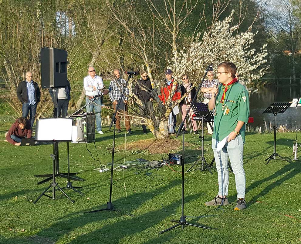 Arrangemanget var gemensamt för frikyrkorna i Vaggeryd och det var församlingarnas ungdomsledare som höll i programmet. Albin Ullerås, Equmeniakyrkan och Elias Högbring, Pingstkyrkan, inramade programmet genom att tillsammans hälsa välkommen och sedan avsluta samlingen. Däremellan hölls vårtalet av Axel Swahn, som är ungdomsledare i Betelkyrkan. Han kommer från Vetlanda men betonade vilken vacker kommun han nu bor i och rekommenderade alla åhörare att besöka alla vackra platser i vår kommun.