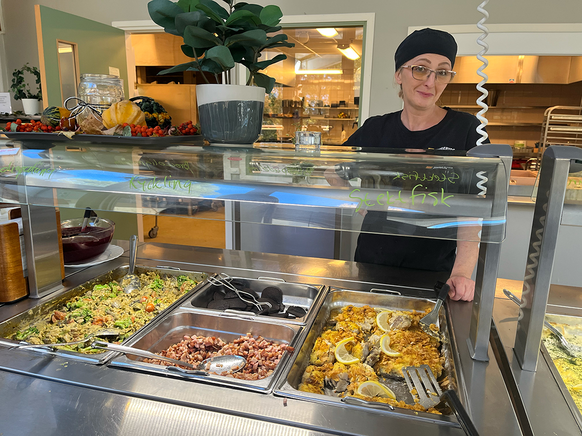 – Hälften av vår mat kommer i från centralköket och den andra hälften lagar vi själva här på Fenix. Drömmen är ju ett nytt kök så att vi kan laga all mat här. Det gör ju att vi kan kyla ner mat och servera som extra rätt dagen efter, det gör ju att matsvinnet minskar betydligt.