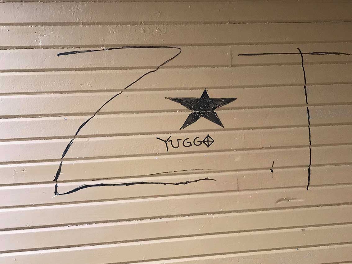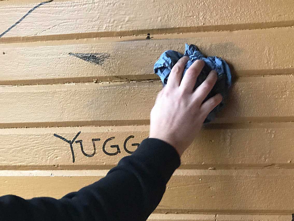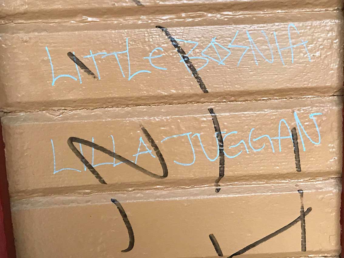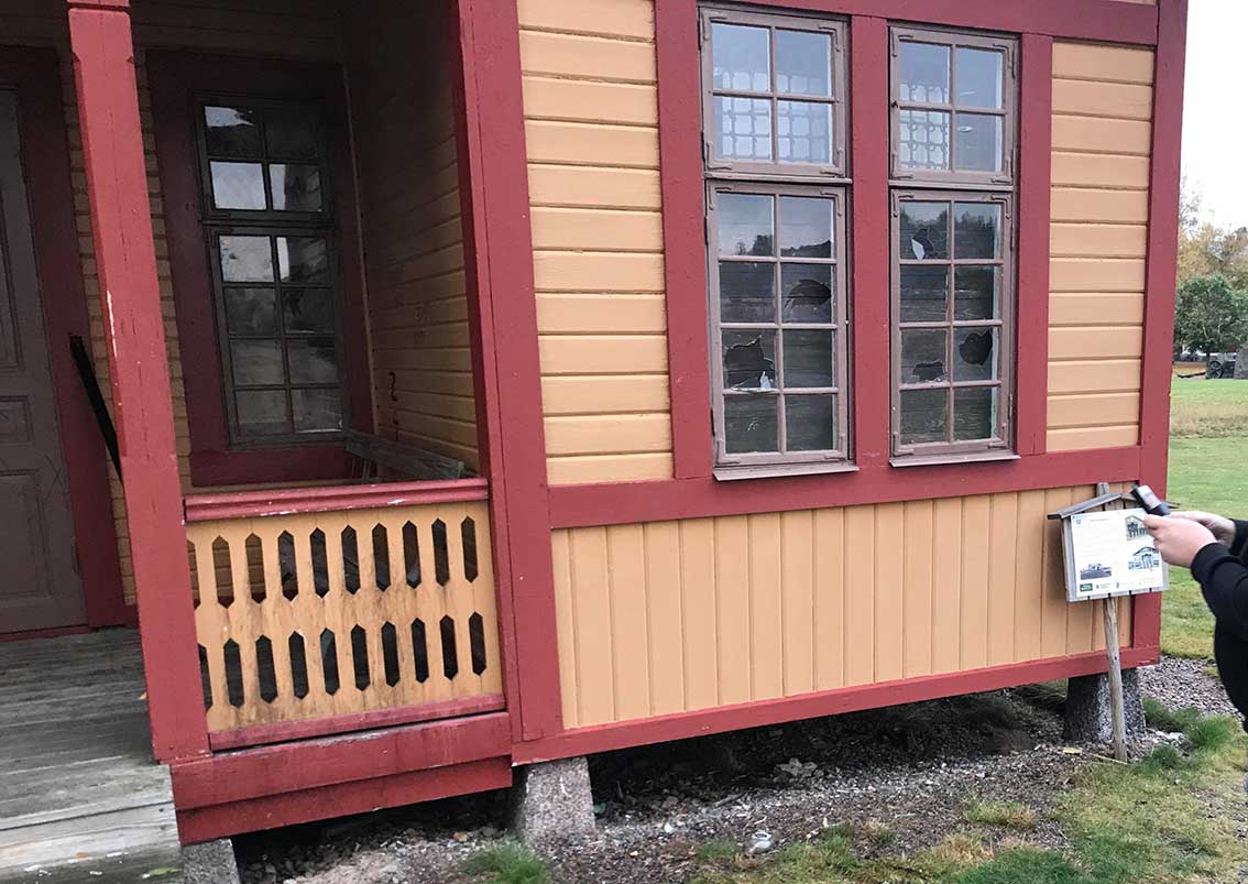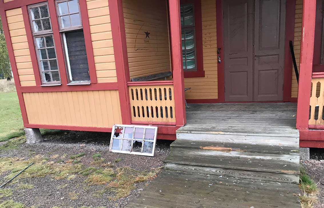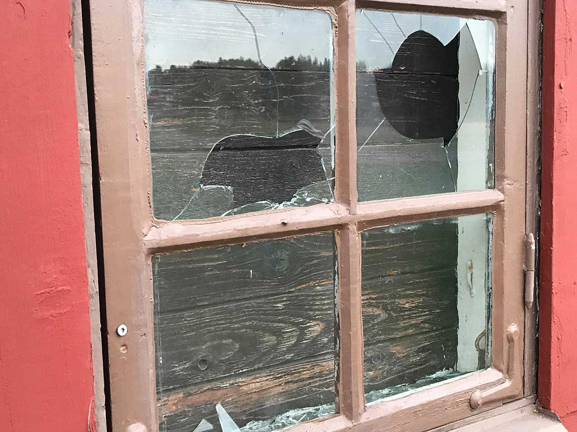 I helgen har ett antal personer klottrat, slagit sönder 16 små fönsterrutor och på annat sätt vandaliserat.
