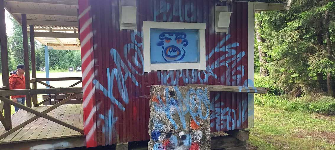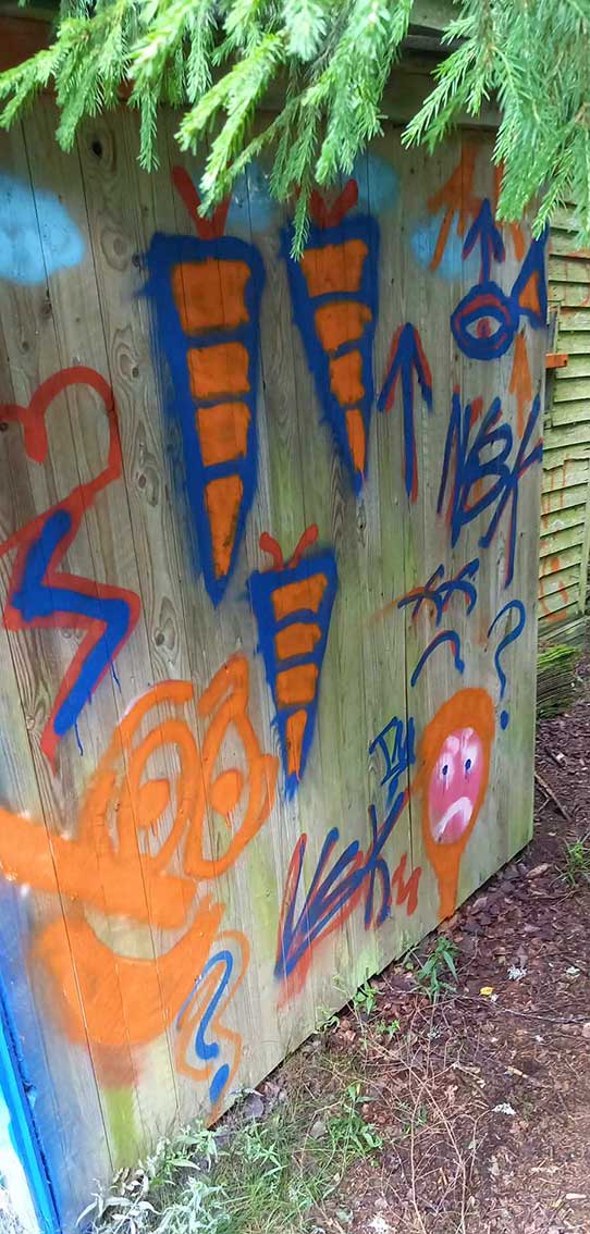 Klubbstugan var fullständigt övermålad med diverse figurer som i och för sig är ganska vackra men inte på en föreningslokal.