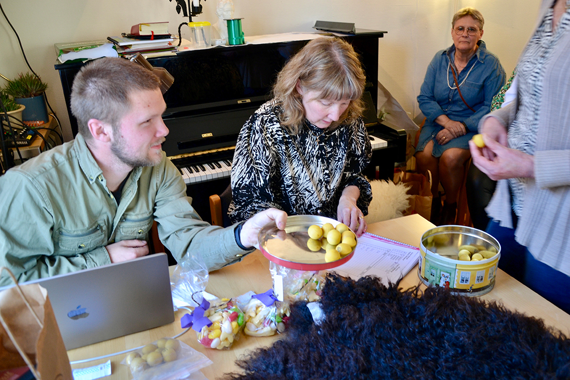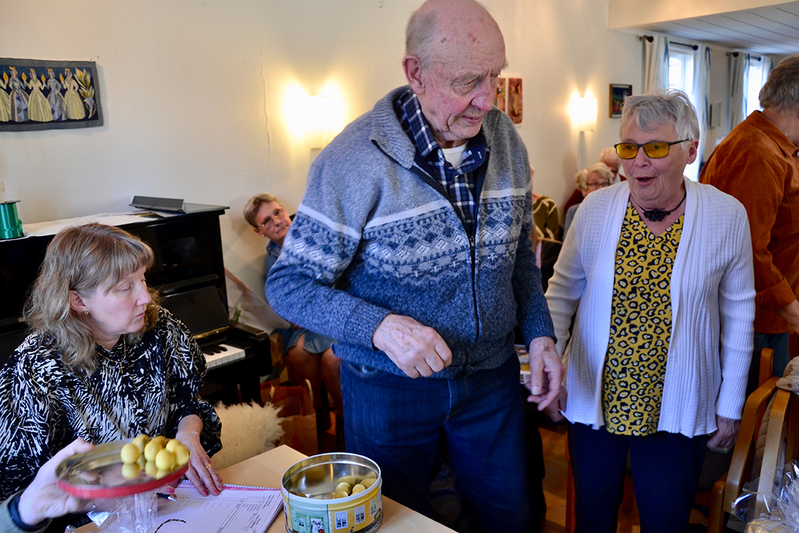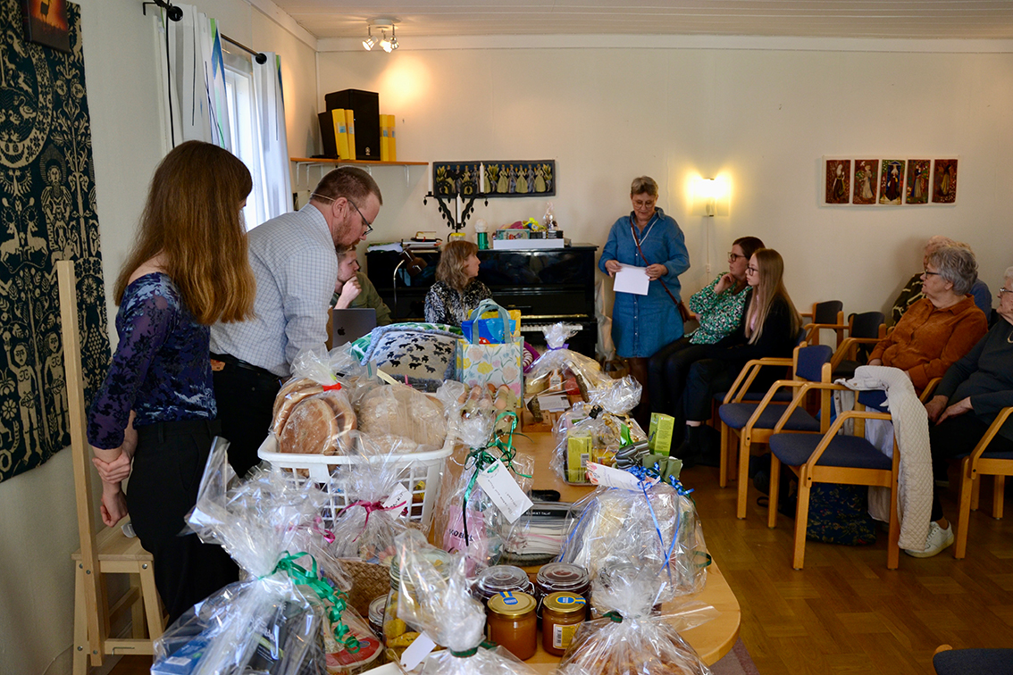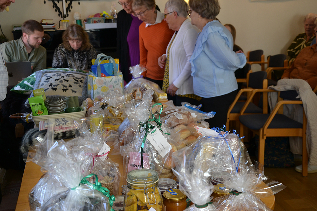Det finns några varor som återkommer år från år, det vet dem som gästar oss. Men har man missat guldkornen i budgivningen förra året kommer en ny chans i år, men då får man vara beredd att betala både högt och snabbt. Nämnas kan att Lilli-Anns sydda fårkudde inbringade hela 2300 kr. Och bland fågelholkar, trappstegar, vinterklädda sopkvastar, fårskinn, blommor, bakverk, ostkakor med mera så hade det kommit in något nytt som vi förundrades över.
