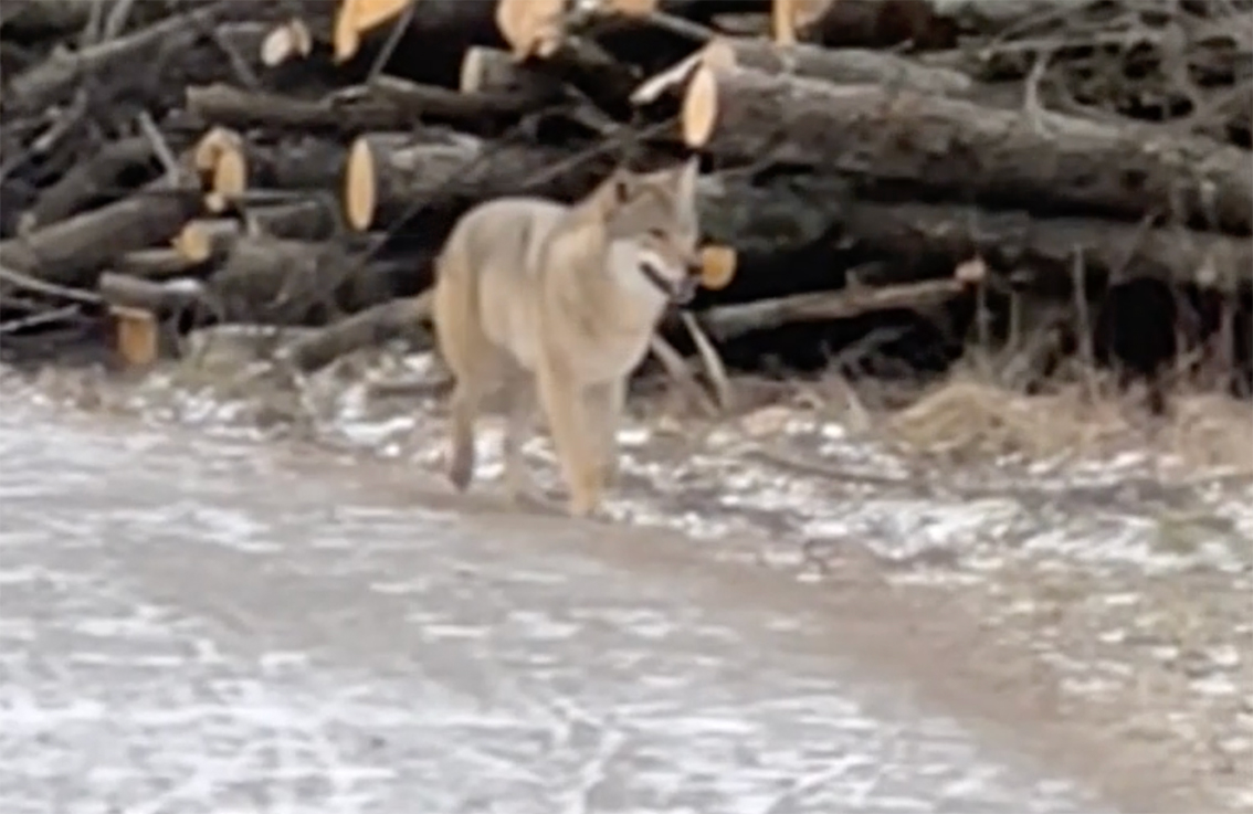 Vid 15.30-tiden fångades förbipasserande varg på bild i byn Hagstad.