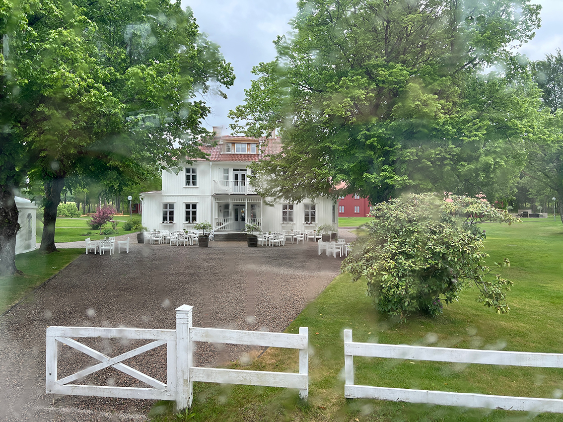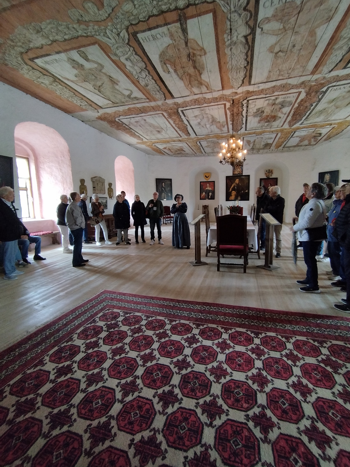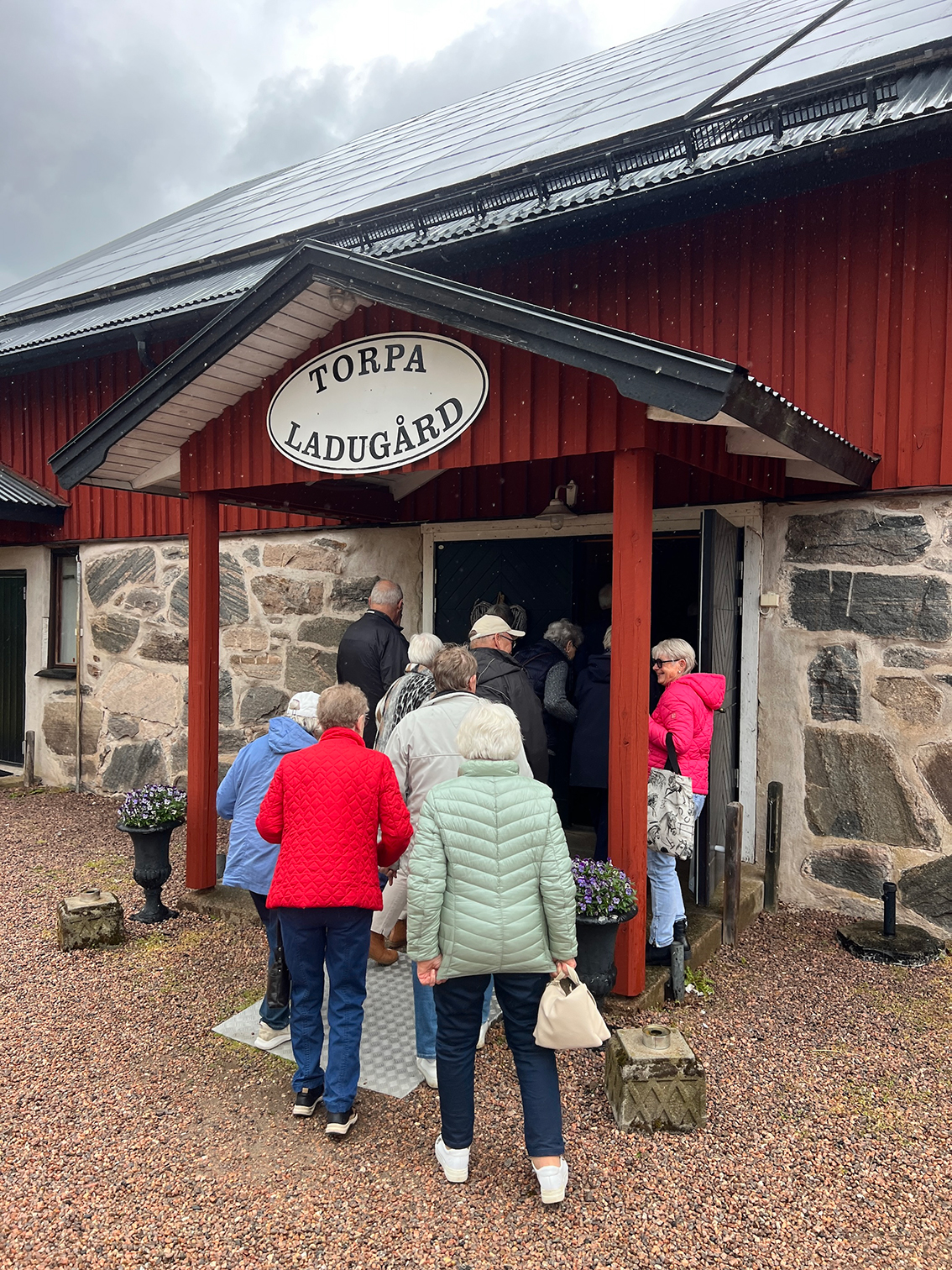 Regnet, ja. Det höll oss sällskap nästan hela dagen – men vad gjorde det? Med paraplyer, regnrockar och gott humör tog vi oss an Torpas historia tillsammans med vår fantastiska guide Lisbeth Rosén från SPF Ulricehamn. Hon berättade levande om släkten Stenbock och om livet på godset förr i tiden. Just Torpa blev Stenbocks släktens främsta stamgods – det har aldrig sålts, utan gått i arv genom generationer. Och visste ni att det var här Gustav Vasa hämtade sin tredje hustru, Katarina Stenbock? Historien blev genast mer levande när vi stod på plats.