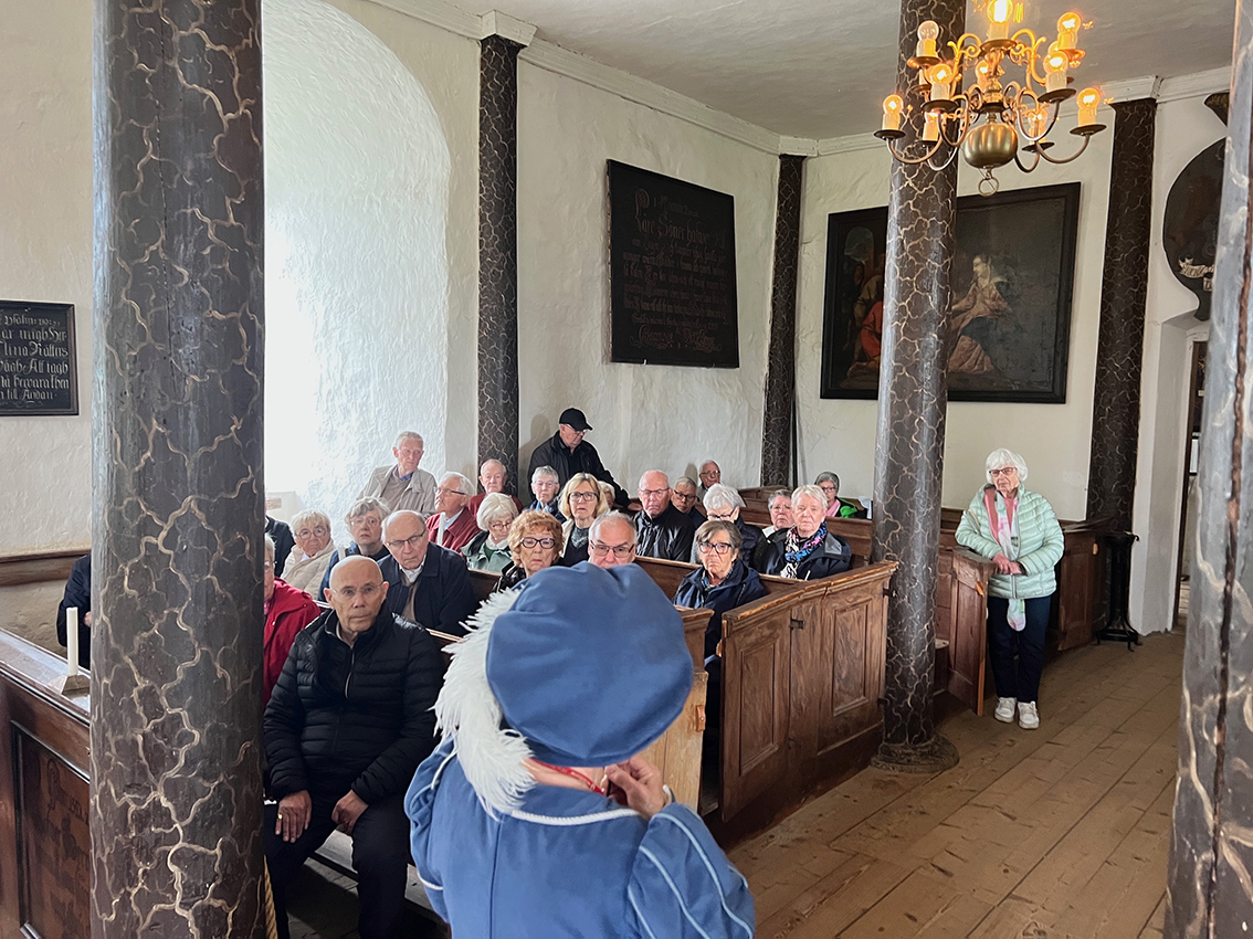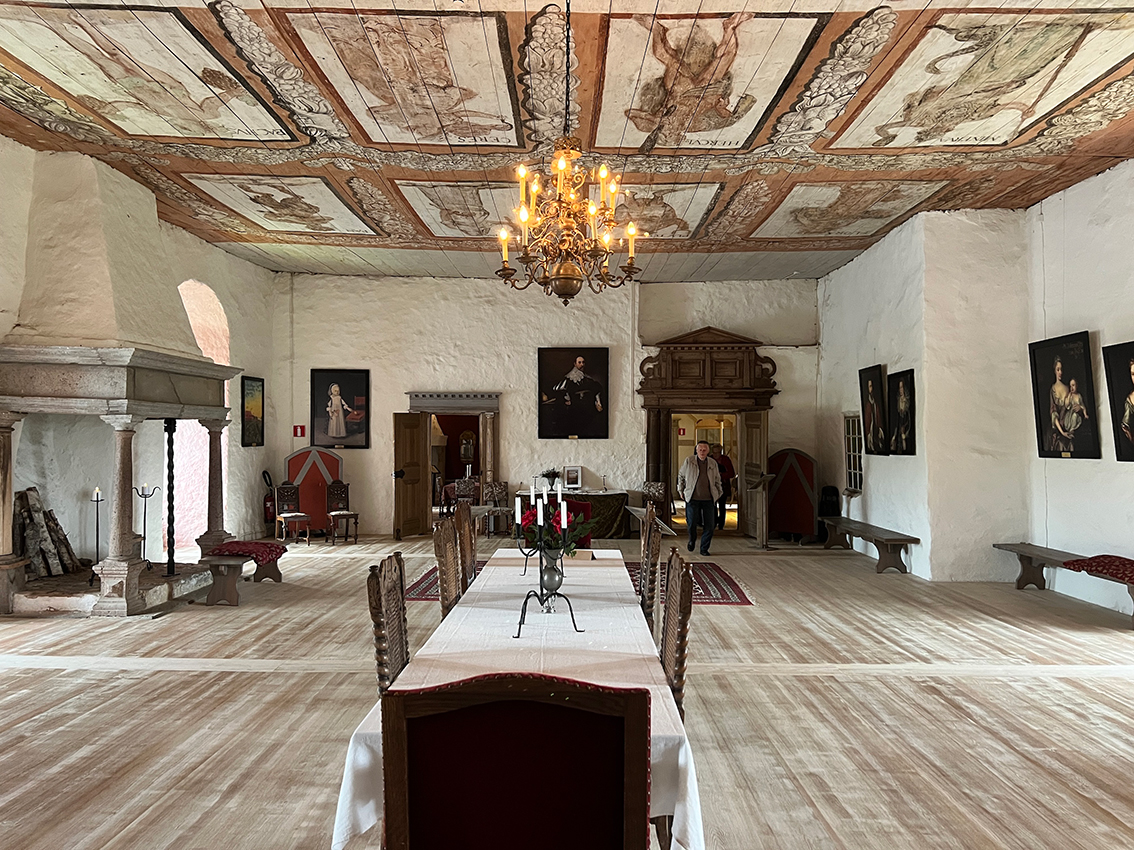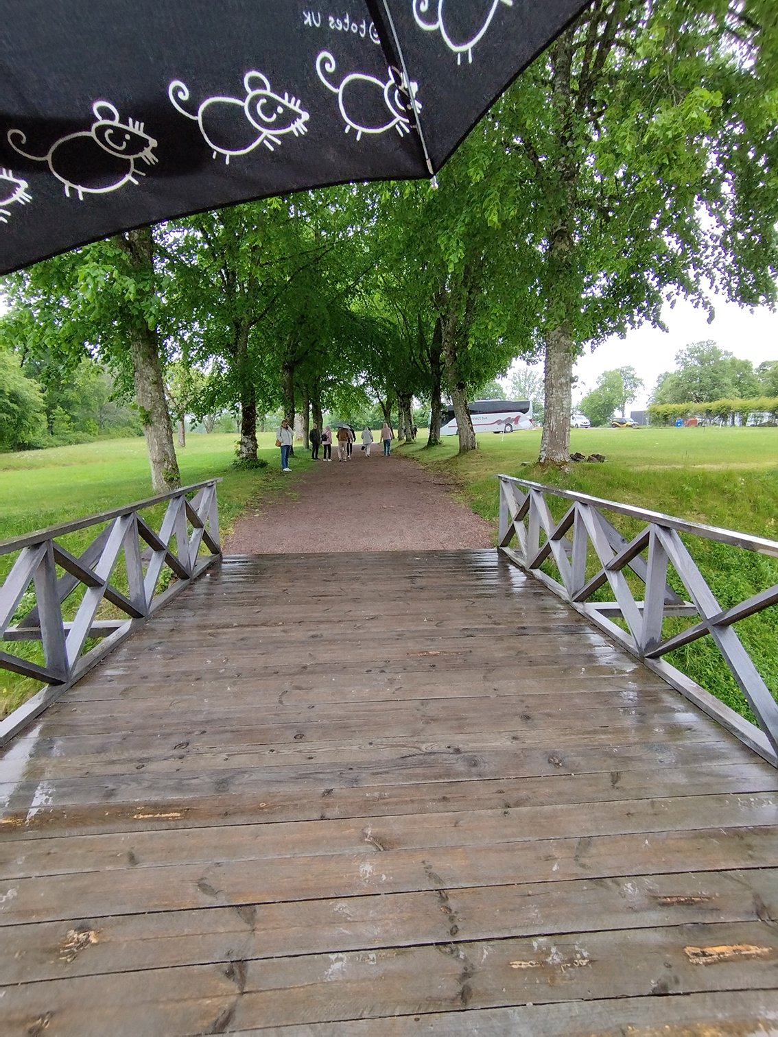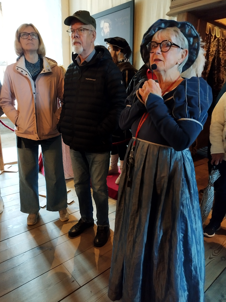 Regnet, ja. Det höll oss sällskap nästan hela dagen – men vad gjorde det? Med paraplyer, regnrockar och gott humör tog vi oss an Torpas historia tillsammans med vår fantastiska guide Lisbeth Rosén från SPF Ulricehamn. Hon berättade levande om släkten Stenbock och om livet på godset förr i tiden. Just Torpa blev Stenbocks släktens främsta stamgods – det har aldrig sålts, utan gått i arv genom generationer. Och visste ni att det var här Gustav Vasa hämtade sin tredje hustru, Katarina Stenbock? Historien blev genast mer levande när vi stod på plats.