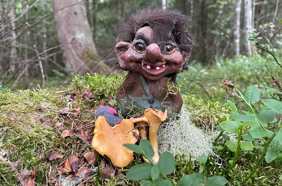 Karin har tagit med sig ett litet troll. Ett litet troll som nu får sitta och vakta platsen.