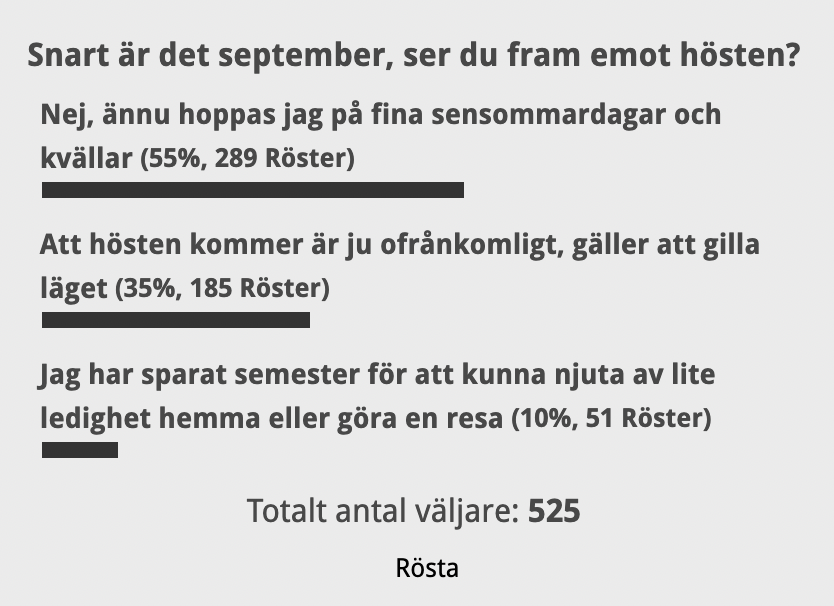 525 läsare svarade på veckans fråga där vi undrade om man ser fram emot hösten?