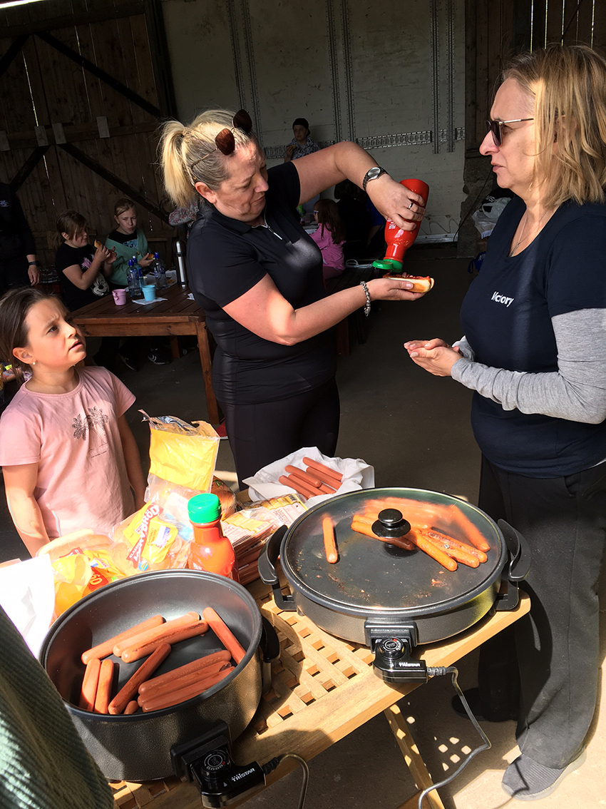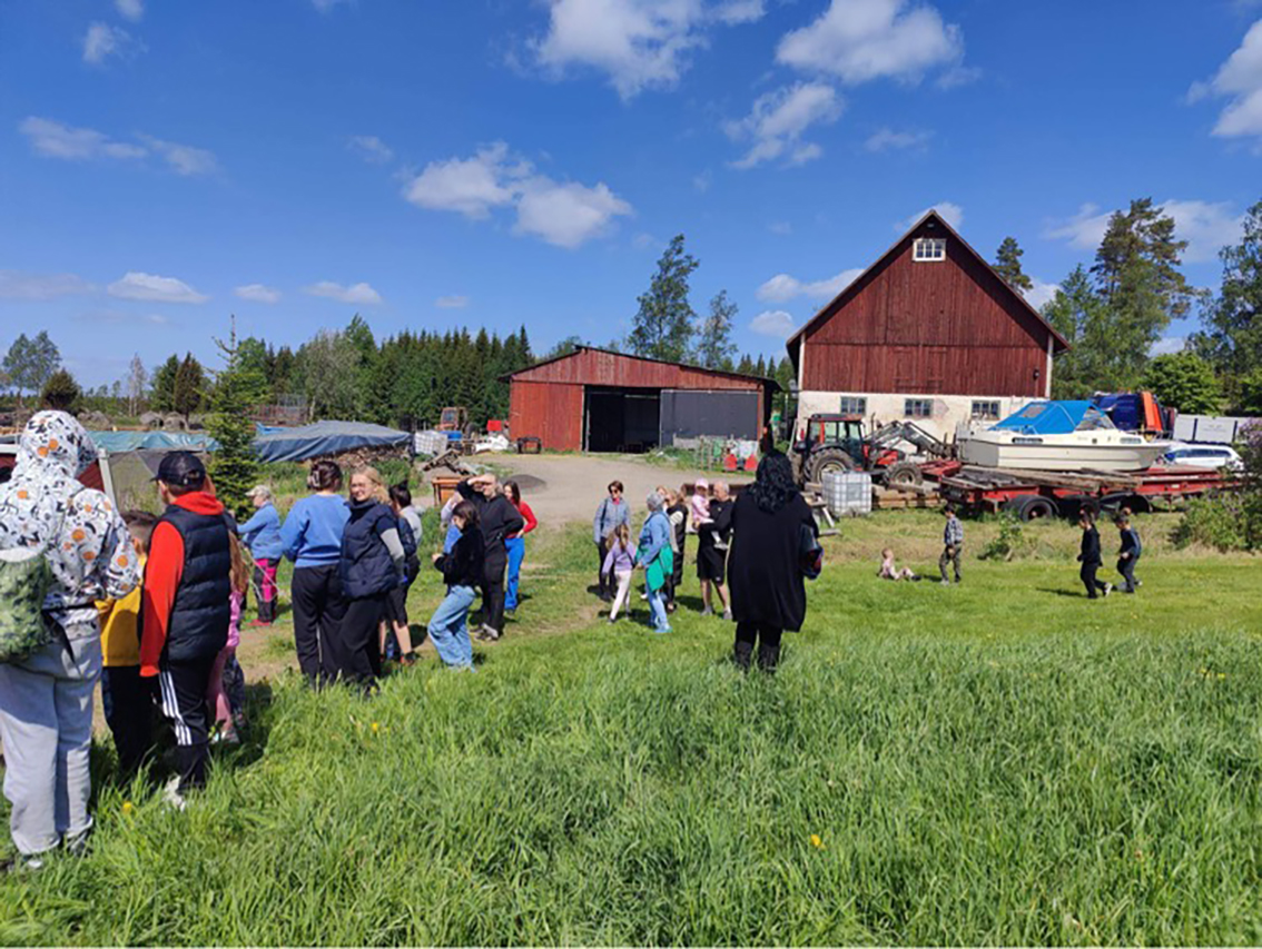 – Först och främst vill vi tacka Mia Niklasson Ceder och hennes man som gav oss möjligheten att komma till gården för vi var så många. Över 50 personer var med, kvinnor och barn, var med på besöket . De förberedde aktiviteter för barnen som att kasta stövel, kasta hästskor för att landa runt ett spett, spela fotboll och för oss alla en rundvandring för att titta på djuren, och en plats där vi kunde grilla. Det var inte lätt att göra det eftersom det blåste mycket. Då kom vi på nåt annat att ta med oss några elgrillspannor, berättar Marica Pavlov.
