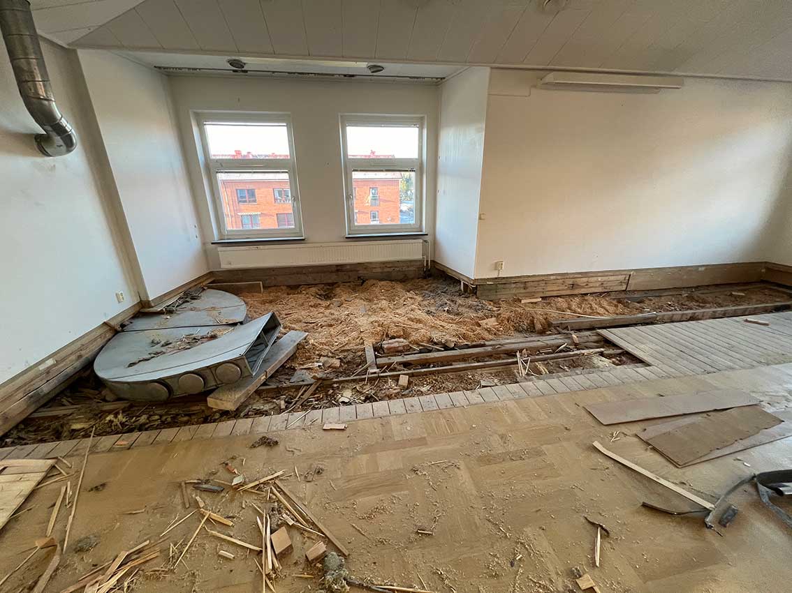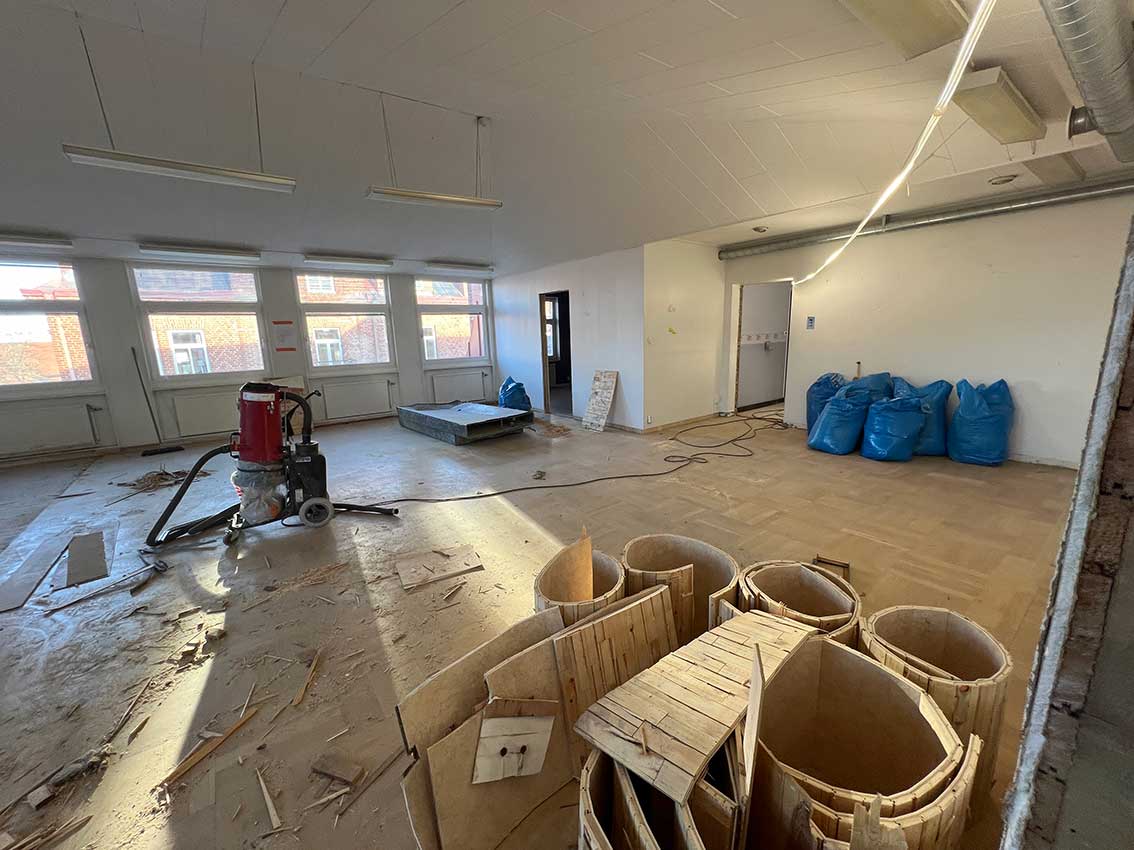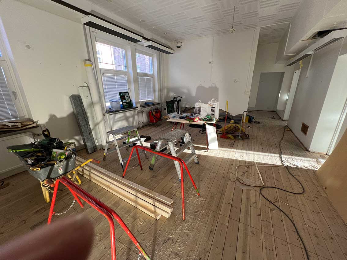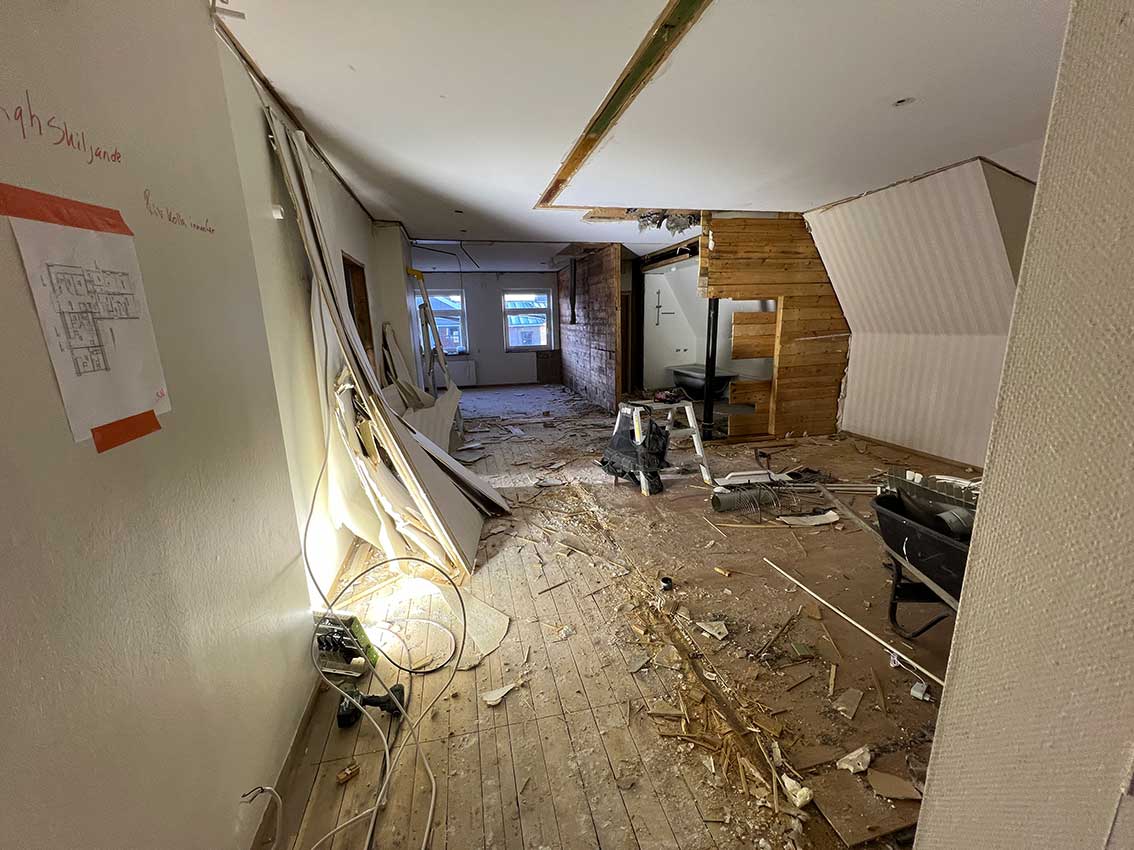 På översta våning där det varit sal för kommunfullmäktige och senast redaktion med mera. 24/11 2023