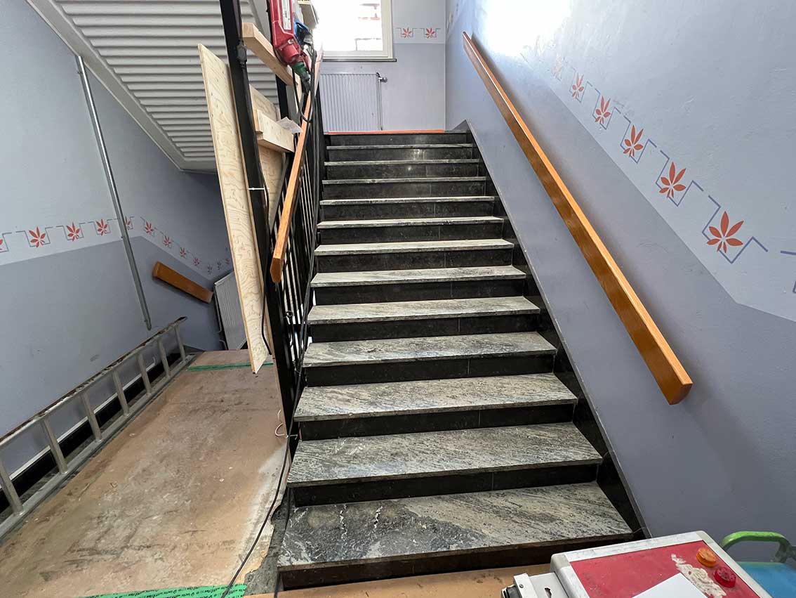 Trapphusen behålls som de är, de är alldeles för vackra att förändra. Givetvis blir det dock ommålning.