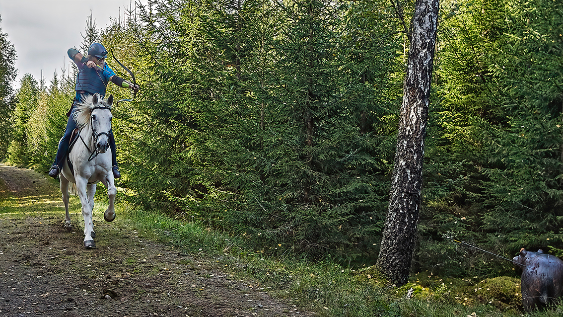 Tävlade i beridet bågskytte