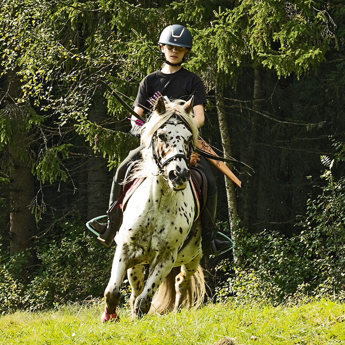 Med sensommarens efterlängtade värmande solstrålar över de småländska skogarna avgjordes i helgen en tvådagars nationell tävling i beridet bågskytte, tillika klubbmästerskap för arrangerande klubben Horseback Archery Sydskyttarna.