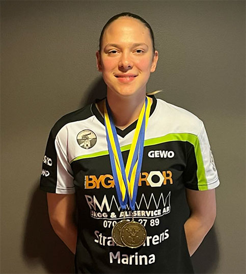 I Halmstad tog Amanda medaljerna i mixed dubbel med Edvin Arvidsson, som tävlar för BTK Frej samt i damjunior i dubbel med Nathalie Österlund från Västers BTK.