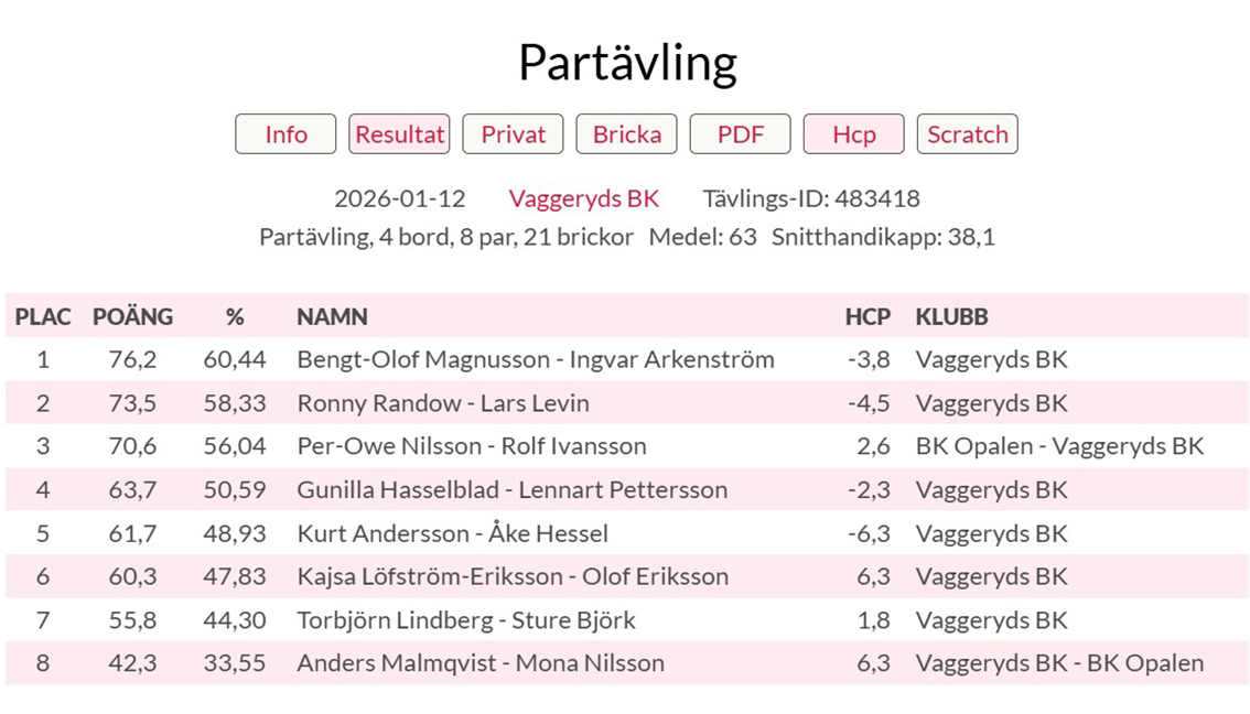 Årest första bridgespel: här är resultaten