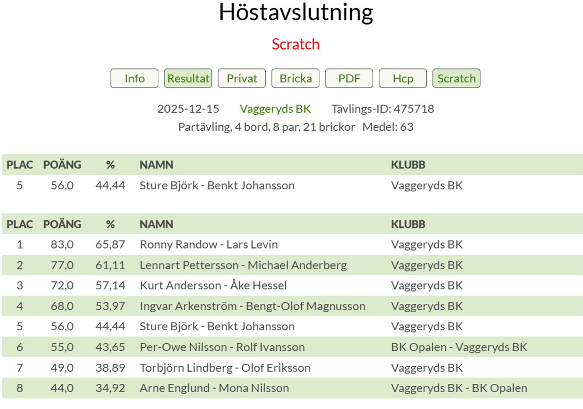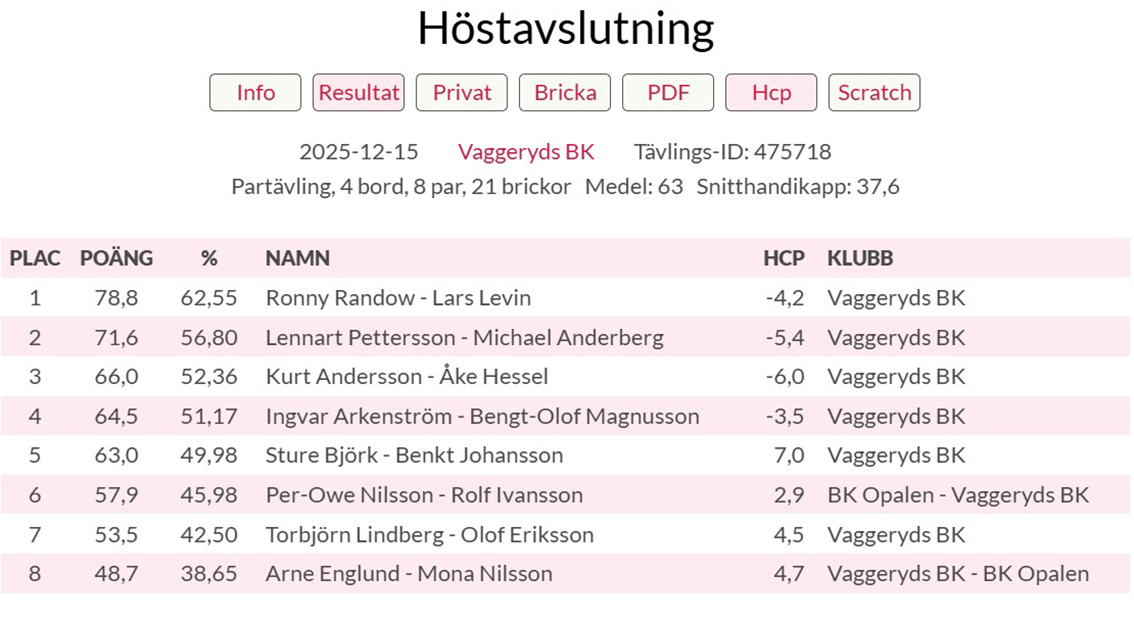 Höstavslutning på veckans bridge: så här gick det
