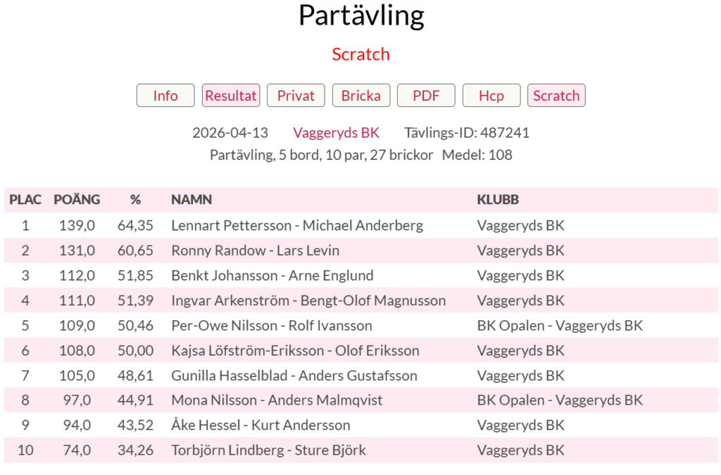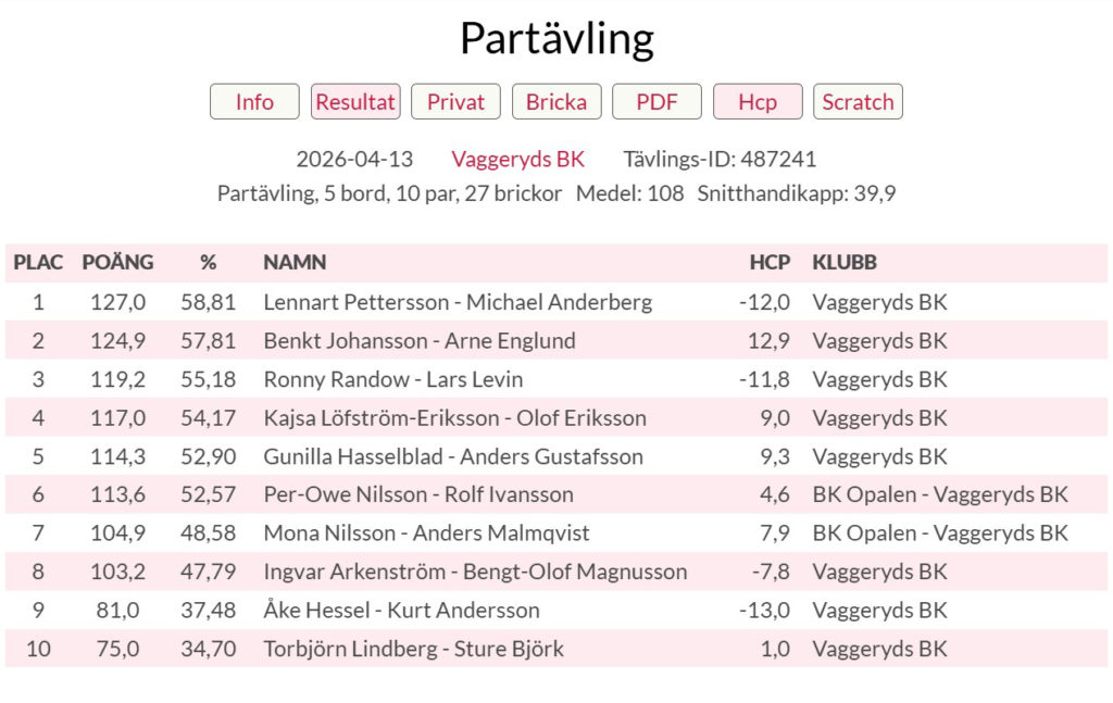 Bridge Lennart och Michael segrade i partävlingar Publicerad 14 april, 2026 08:52 Lyssna Det har spelats bridge hos Vaggeryds BK. Skribent Artikeln är skriven av Redaktionen redaktionen@skillingaryd.nu Skriv en kommentar Avbryt svarKommentar * Genom att skicka kommentaren godkänner du vår GDPR-policy för kommentarer.Namn * E-postadress * Webbplats Spara mitt namn, min e-postadress och webbplats i denna webbläsare till nästa gång jag skriver en kommentar.