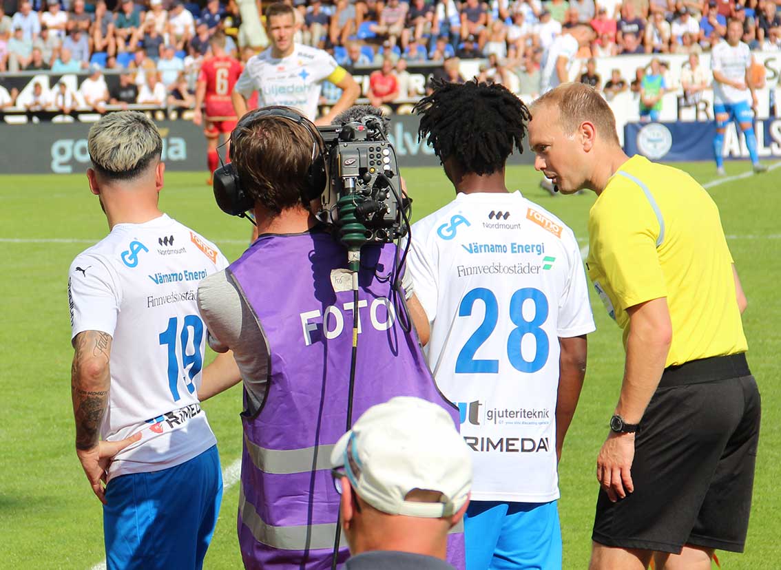 Vår journalist Per Bunnstad hade i sällskap av Lena Rylander som nog såg sin första allsvenska fotbollsmatch när IFK Värnamo förlorade med 1–2 (1–0) mot Djurgården.