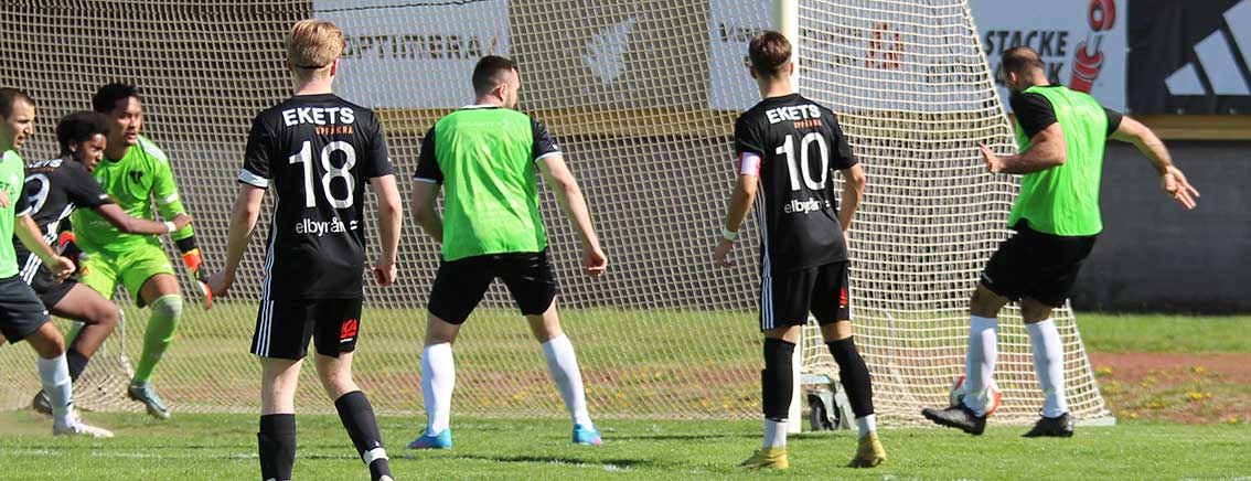 − I första halvlek dominerar vi kraftigt och skapar mängder av målchanser. Bollarna rullade in en efter en och i pausvilan är vi i överläge med en trygg 4−1-ledning. Sedan i andra halvlek, tappar vi lite fokus och tempo och växlar ner ett par snäpp. Men dock är segern aldrig i fara och det är skönt att kunna få bärga första trepoängaren för säsongen