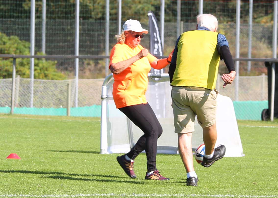 Det var matcher mellan olika lag från yngre upp till herrlaget i division fem. Det var också ett par lag som tränade, ett ungdomslag plus gåfotboll där medelåldern nog låg kring 70.