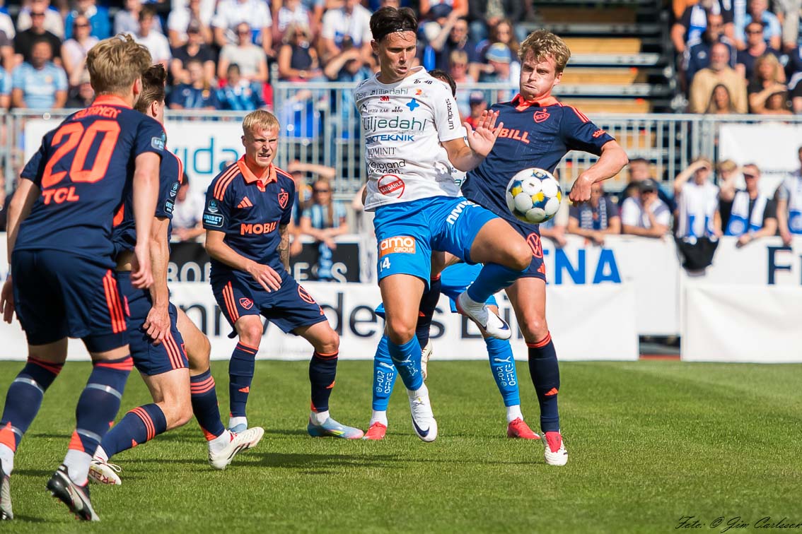 14.30 Efter längre bollinnehav av Djurgården så är det Värnamos tur att rulla runt bollen.