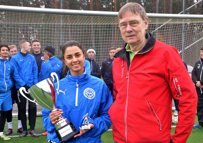 I dag på morgonen var det prisutdelning till Mona Chahrour som hyllades vid fotbollsträningen på Finnvedens gymnasium och mer exakt i samband med träning på Ljusseveka konstgräs. Fotbollstränare på skolan är Evgueni ”Schenka” Kouznetsov och Johan Arvidsson. Det var naturligtvis glädje när alla fick veta att Mona blivit årets vinnare.