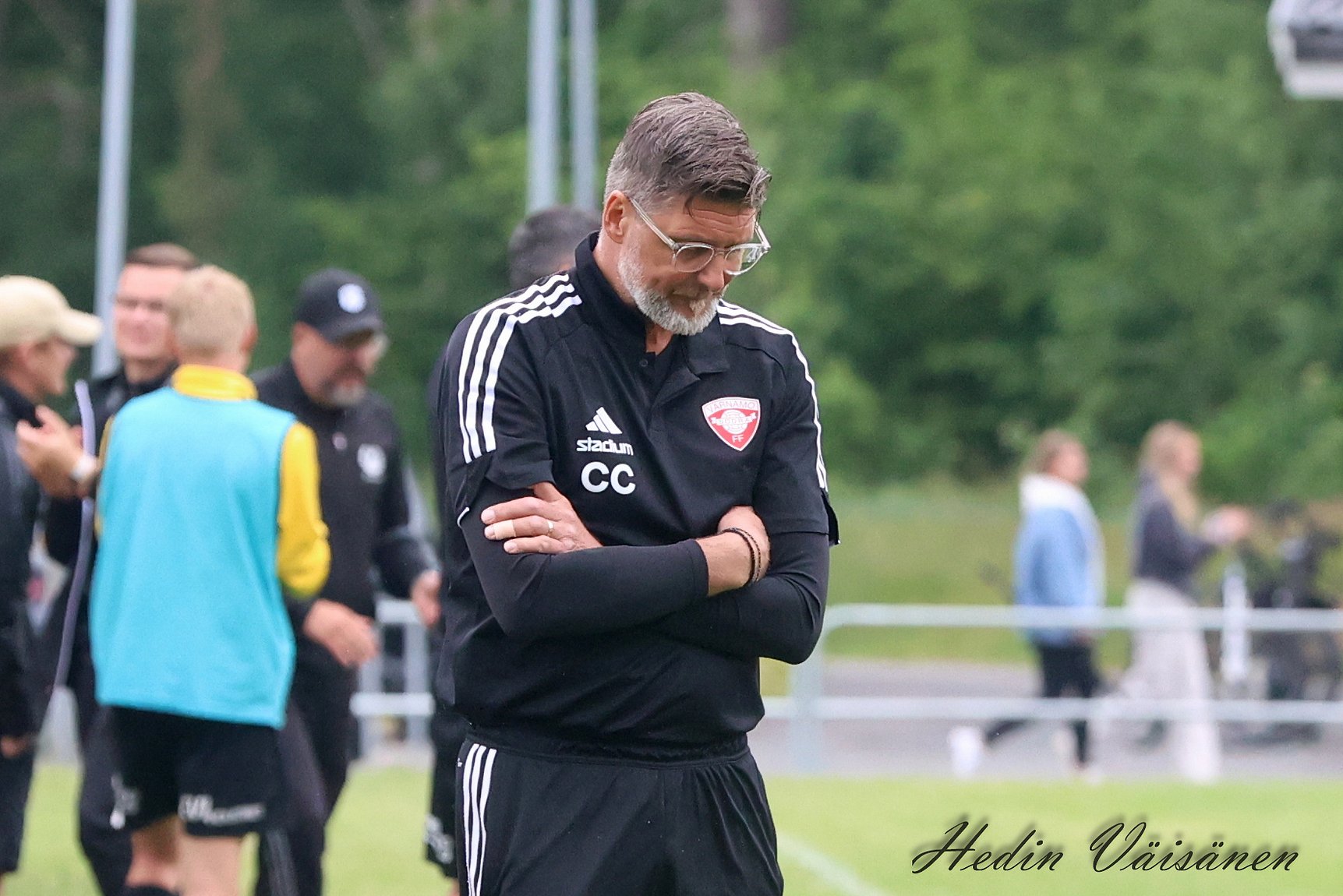 – De gör två av sina mål efter inkast. Det tredje målet beror på planens kvalitet. Vår målvakt är skicklig med fötterna och ska gå ut och möta en boll, då studsar den upp i knähöjd på honom och de tar bollen och gör mål.