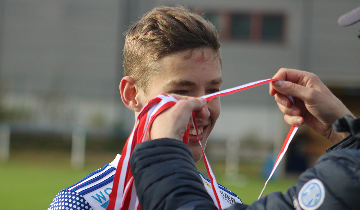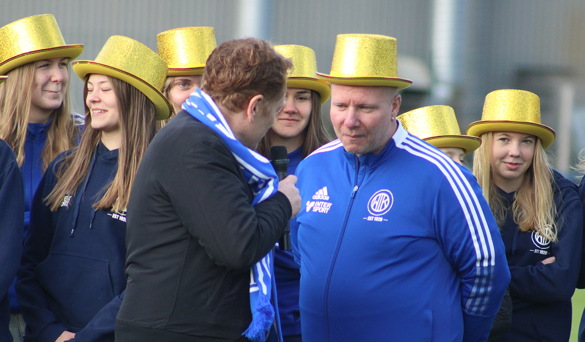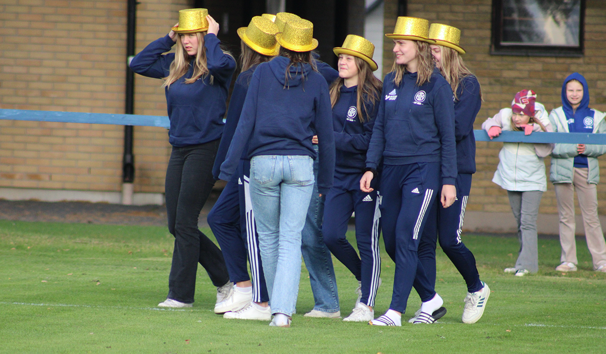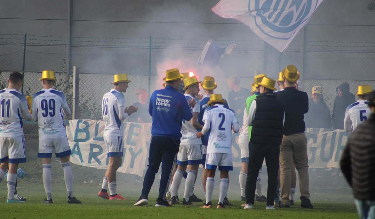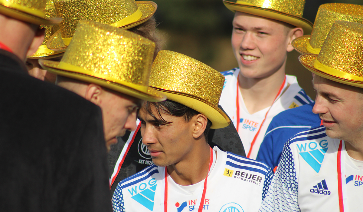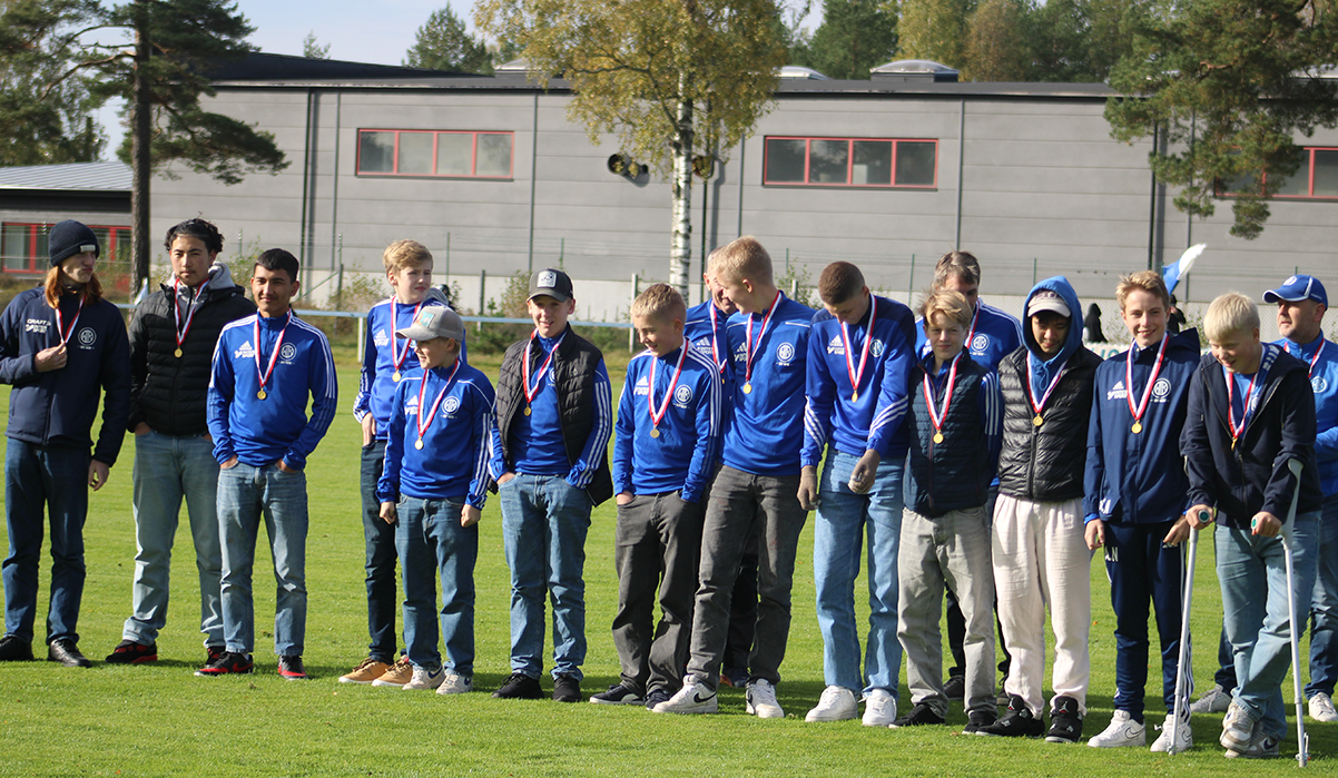 Efter a-lagen spelat klart sina matcher firades lagen på innerplan med guldhattarna på. Men det var inte bara seniorerna som uppmärksammades. I halvtidsvilan fick P 09-laget ta emot medaljer för sin serieseger. Även flicklaget födda 2009 och 2010 vann sin serie. De är dock iväg på cup i helgen och kunde inte närvara.