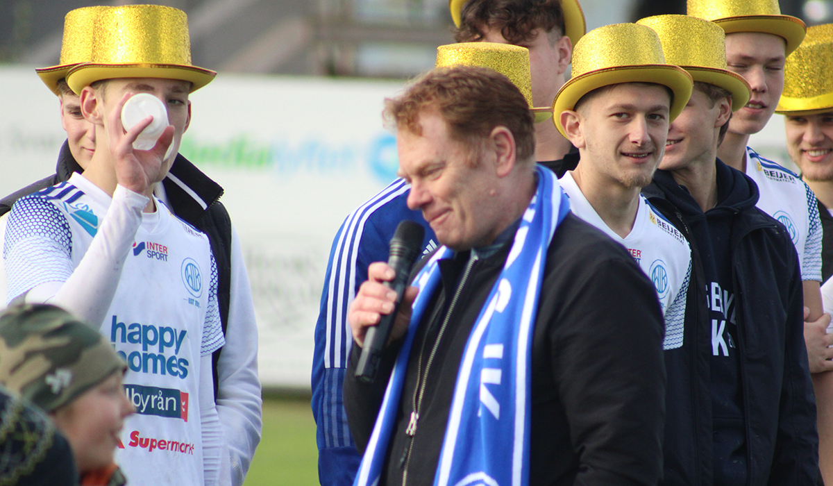 Båda a-lagen var redan klara för avancemang inför deras respektive sista seriematcher. Det kanske gjorde spänningen inte riktigt infann sig på Vaggeryds IP denna soliga men kylslagna oktoberdag. En som strålade ikapp med solen var Waggeryd IK:s ordförande Bengt Carlsson.
