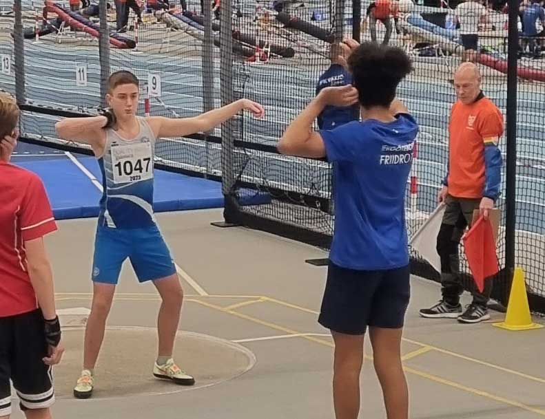 Jonathan Rinman mötte tuffaste möjliga motstånd i P 14 när han ställdes mot Sverigestatistik-ettan i kula i sin åldersklass. Efter en jämn kamp stod Jonathan som segrare med en