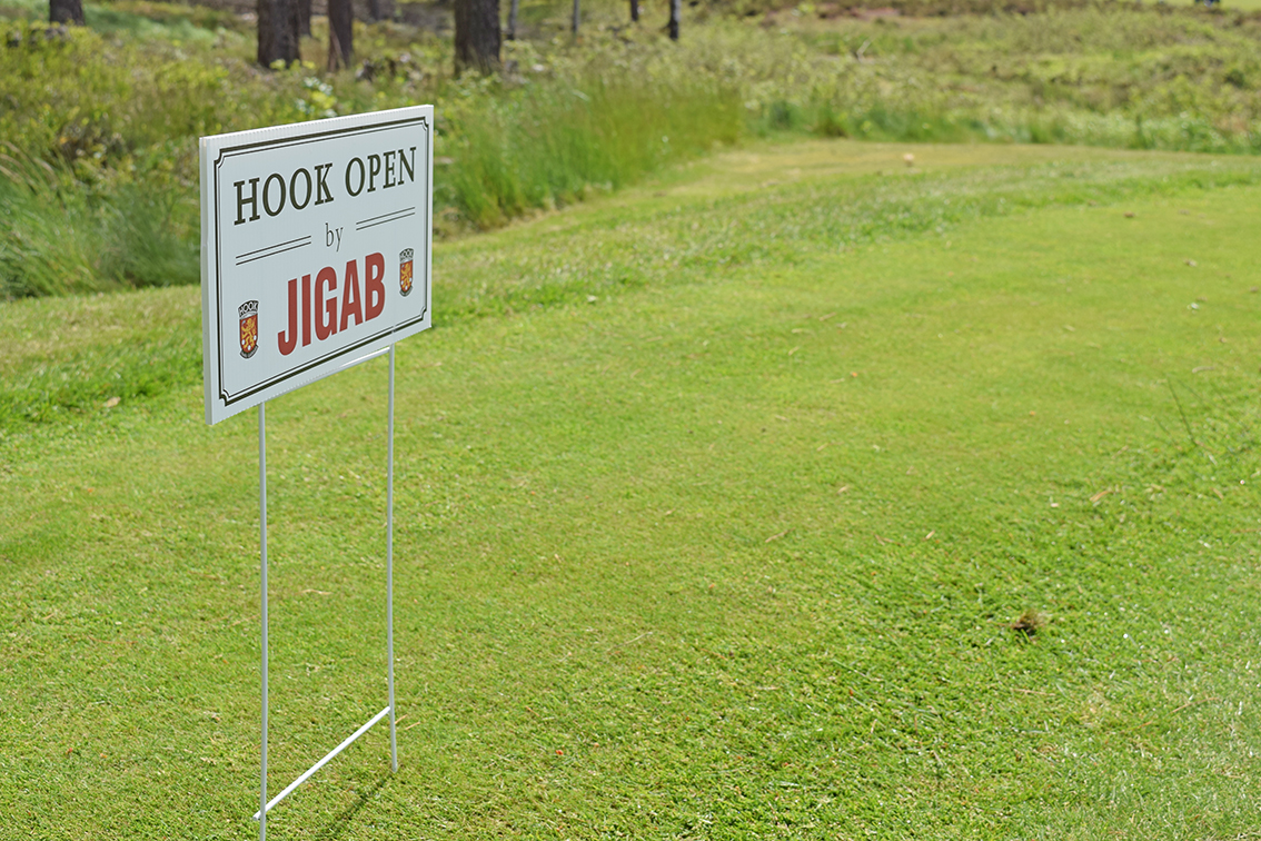 En runda på 18 hål beräknas ta ungefär 4,5 timma. Starten gick mellan 8 och 10 i förmiddags och andra rundan startar efter lunch. Förutom tävlingsledningen jobbar ett tiotal funktionärer med Hook Open by Jigab under dagen.