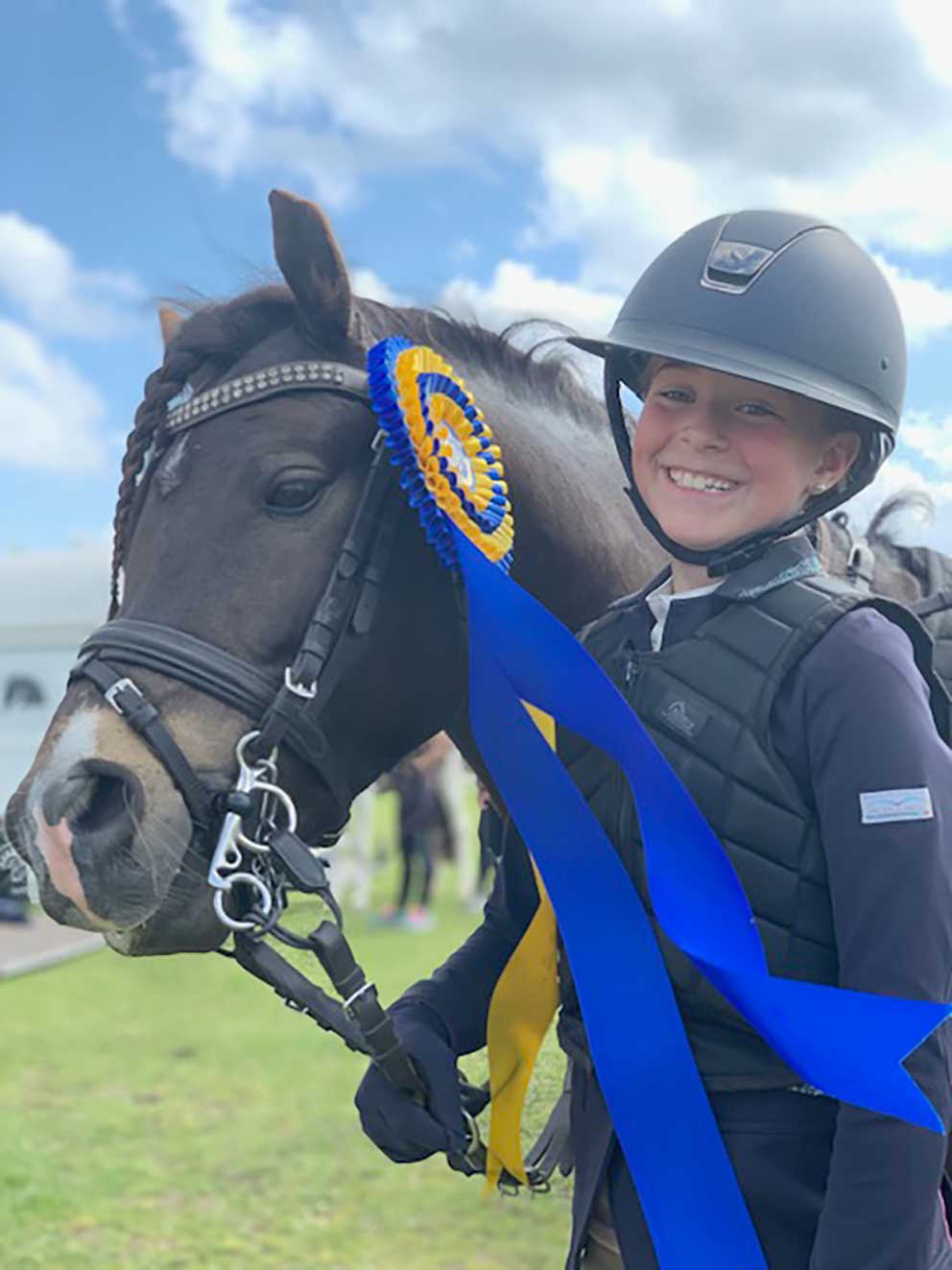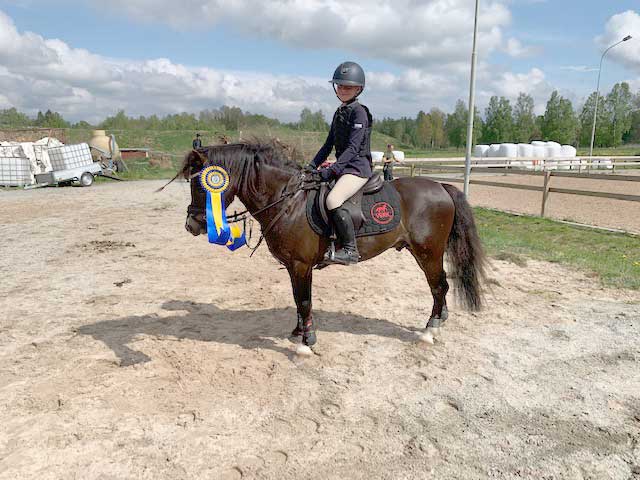 Igår ordnade Växjöortens fältrittklubb tävling där Ella Gustavsson och B-ponnyn Quintus tog hem tredjeplatsen i lätt B+. Ella och Quintus debuterade sedan i lätt A och som enda felfria ryttare tog Ella hem första platsen.