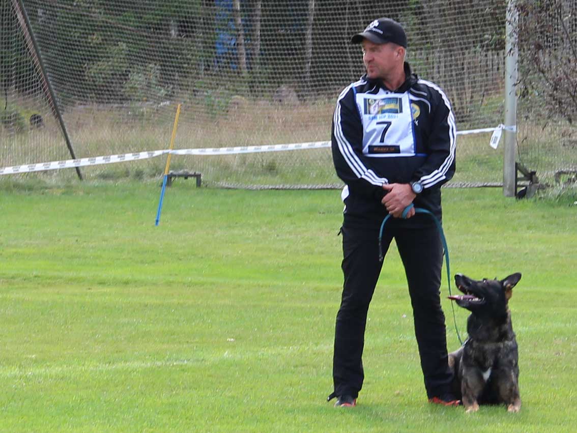 Thomas Fröding, Skillingaryd från Schäferhundsklubben Hok kom femma vid SM för schäferhundar i Klevshult och det betyder en plats i det svenska VM-laget.