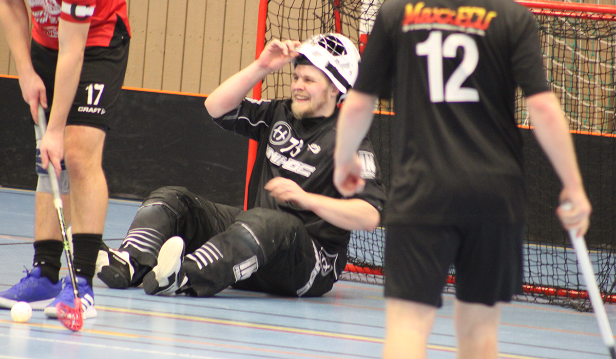 Patrik Gunnarsson visar att det är kul att lira innebandy. Foto: Henrik Skoglund