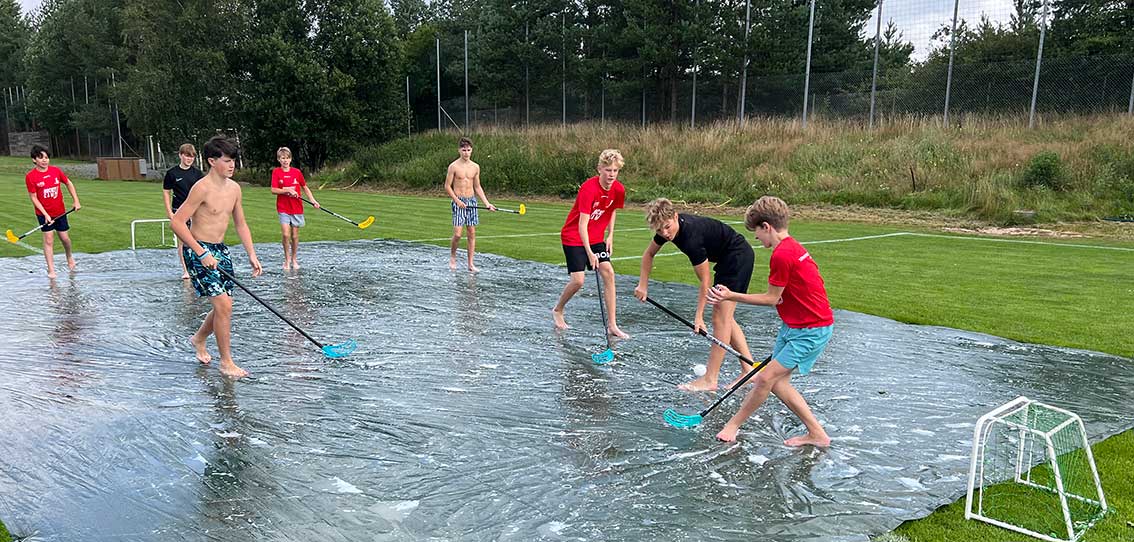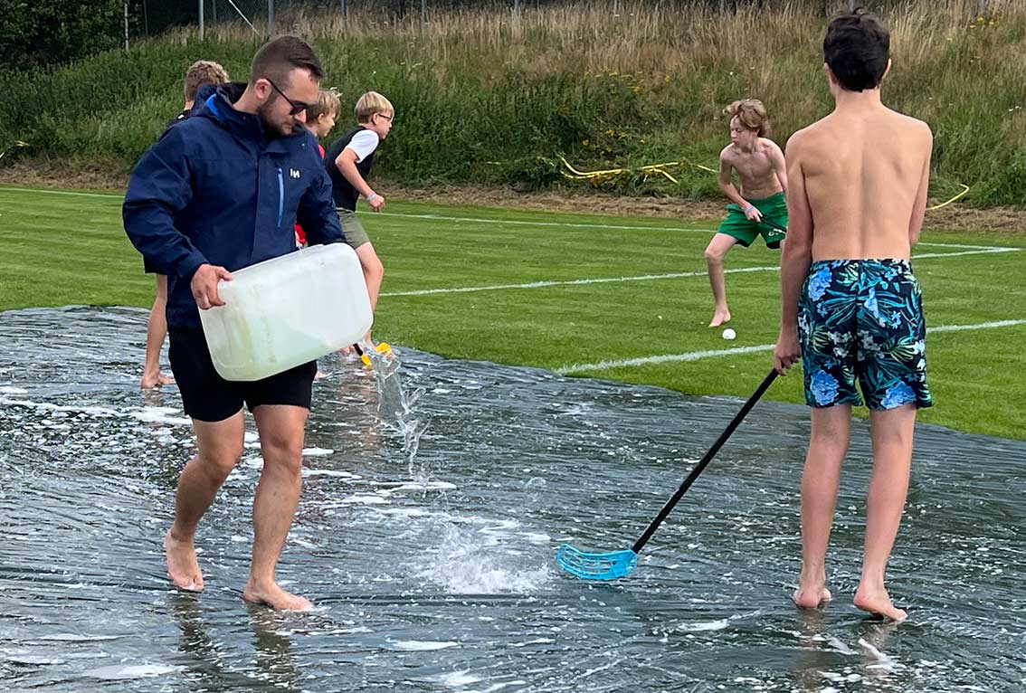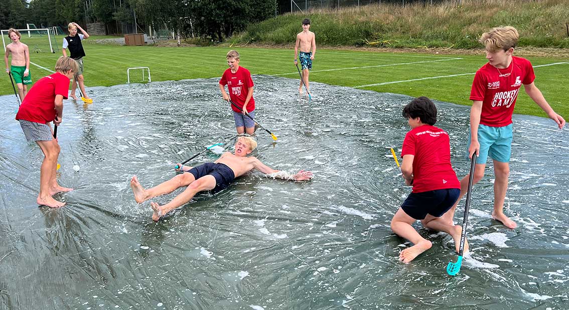 Det var till och med bandy på programmet, dock inte på is utan på såpa. Det är en aktivitet som alla verkar tycka om.