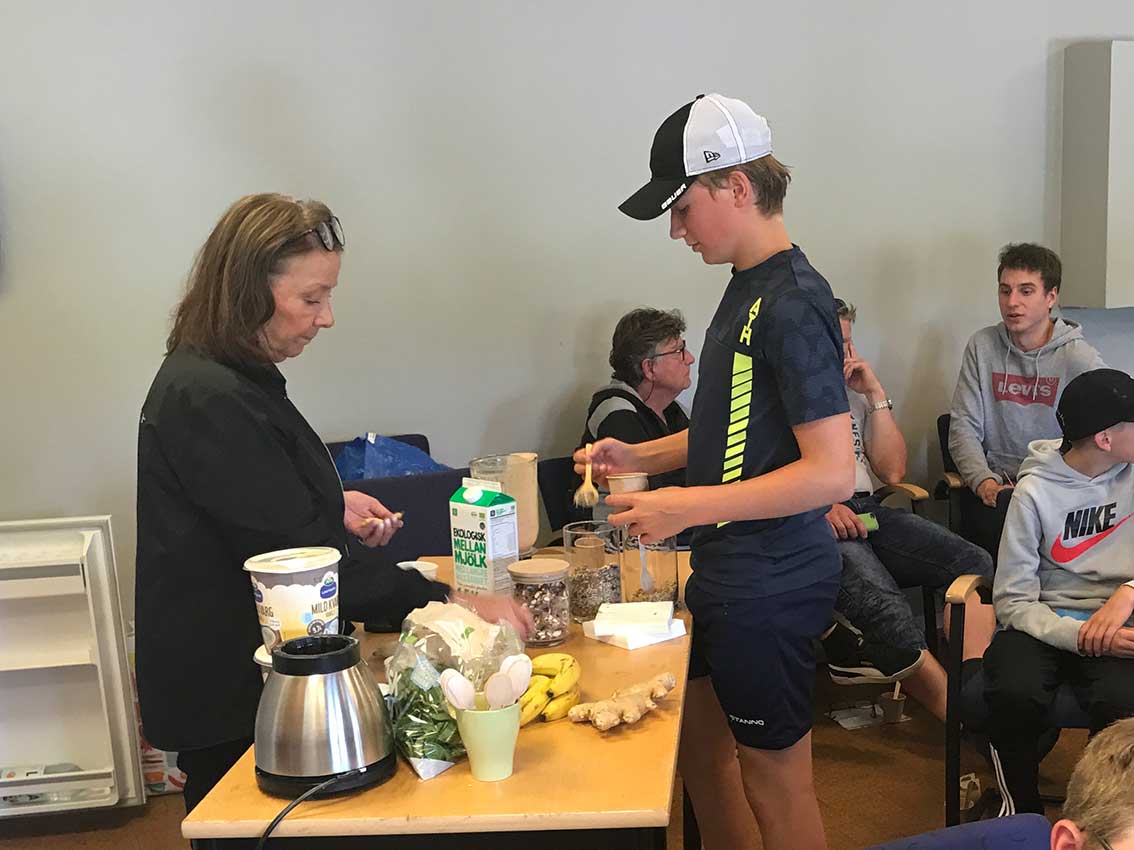 Ishockey är givetvis nummer 1 men i dag har deltagarna även fått prov på golf, lära om nyttig kost, skotträning utomhus, bad och lite annat.