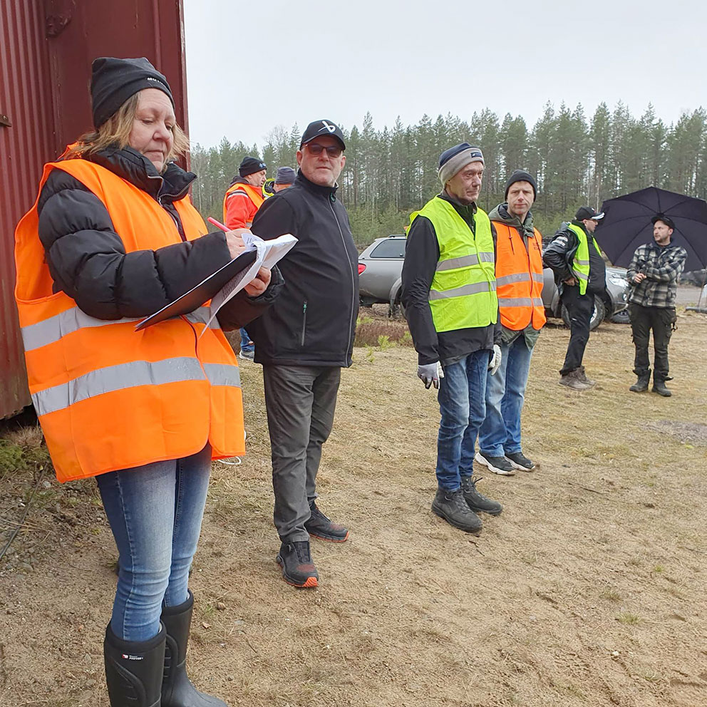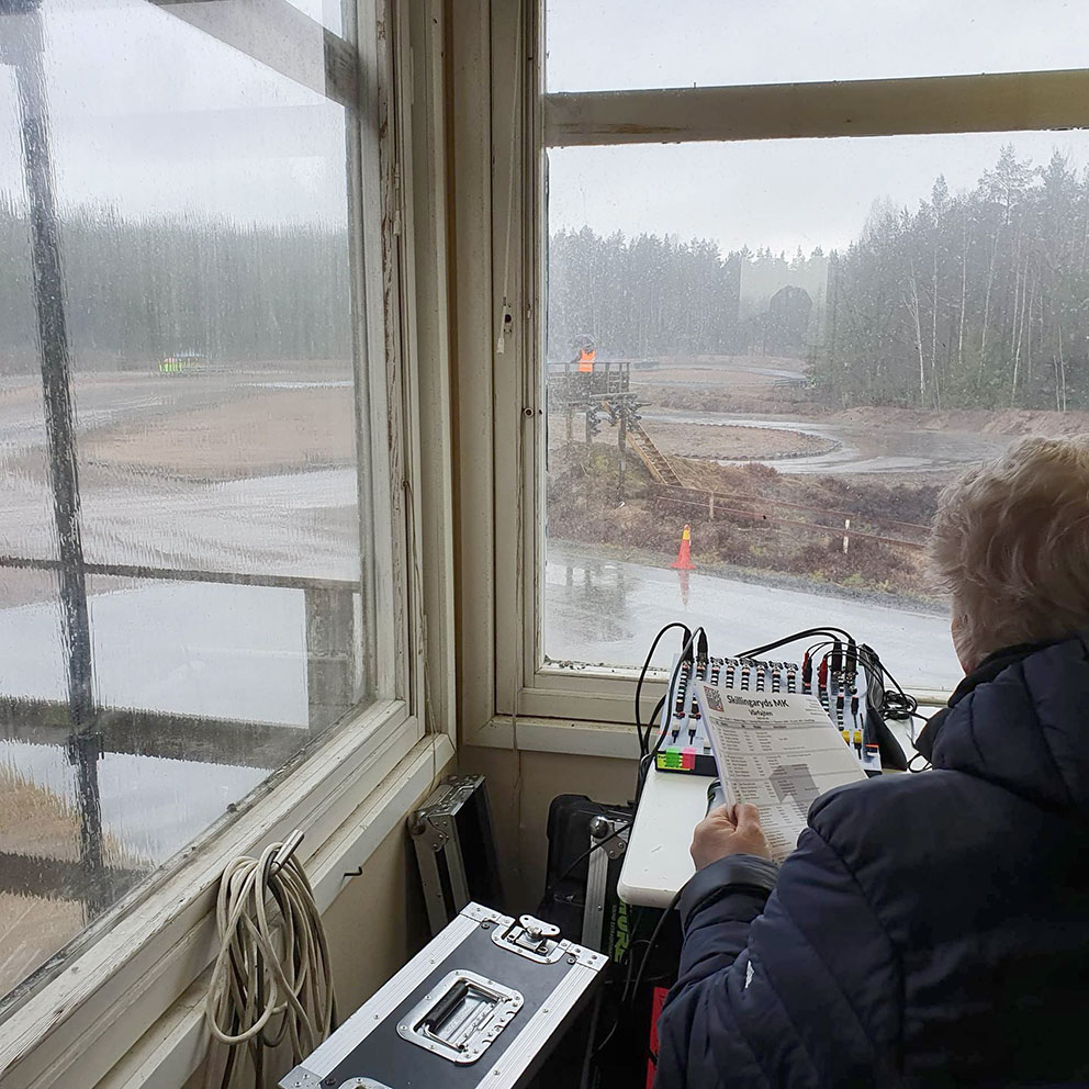 Obligatoriskt förarsammanträde innan start. Här är det upprop och närvarokontroll av Pia Thulin, tävlingsledningen